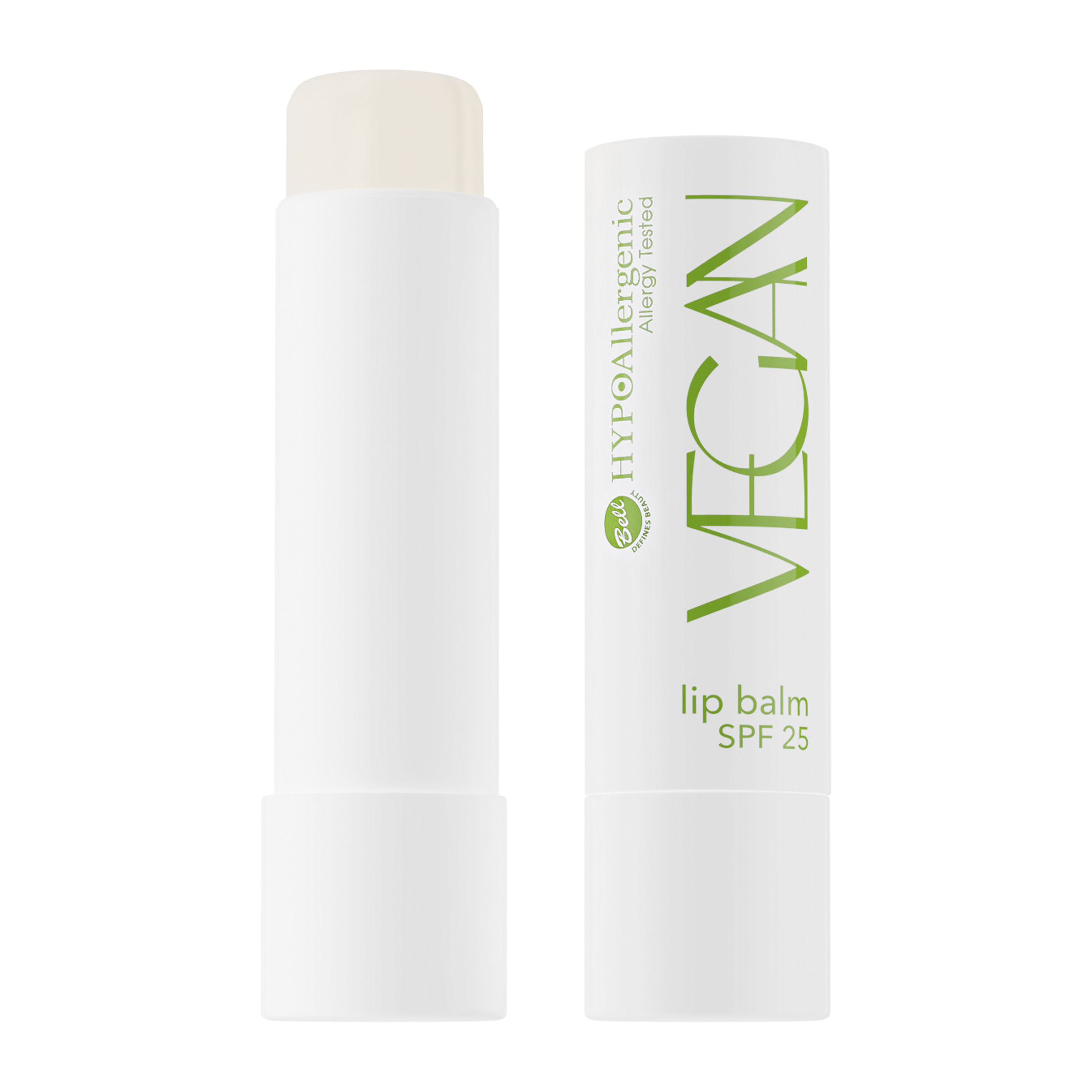 Veganský balzám ošetřuje suché a popraskané rty, zatímco SPF 25 chrání jemnou pokožku rtů před škodlivými účinky slunečního záření.