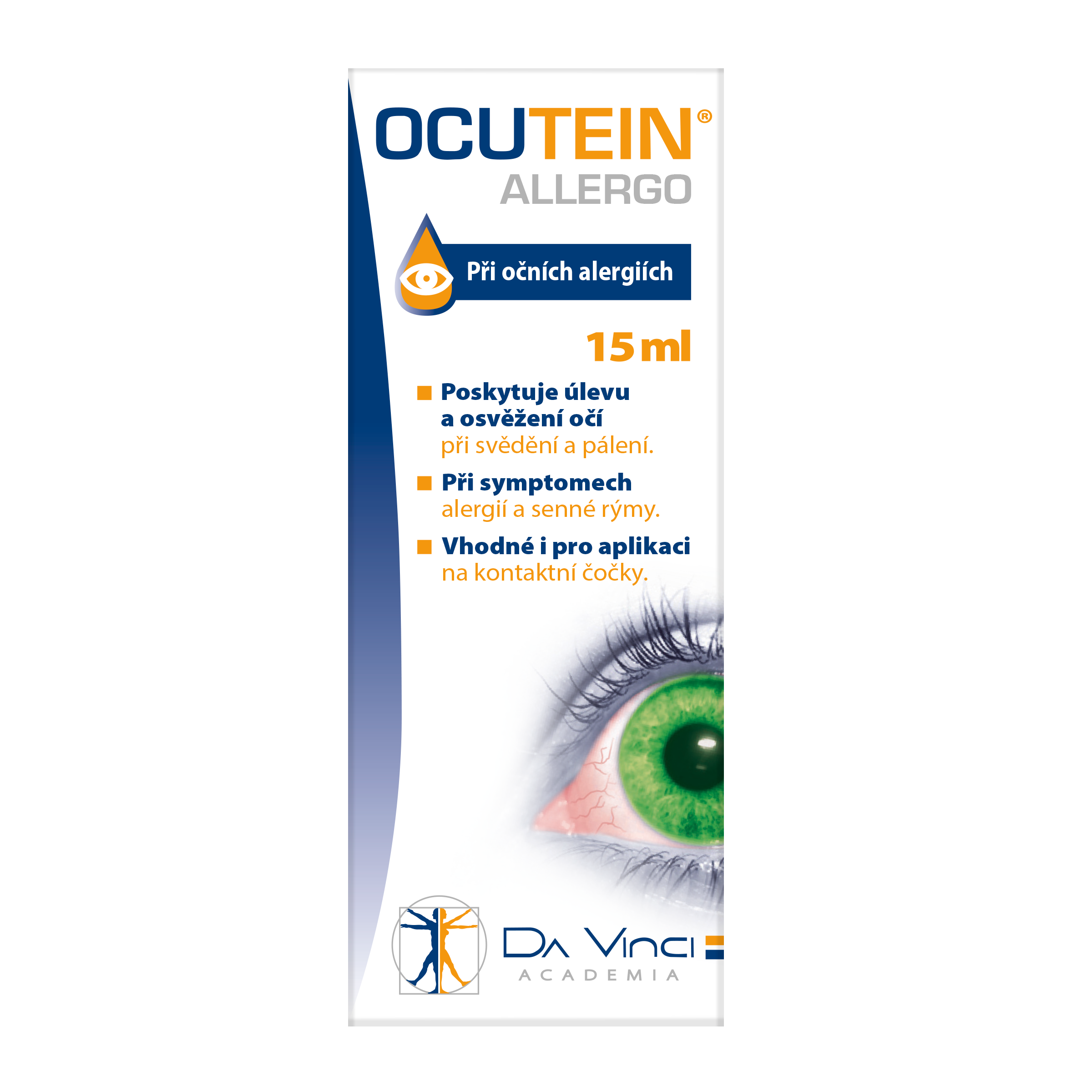 OCUTEIN® ALLERGO, zdravotnický prostředek, jsou hydratační a lubrikační oční kapky, které poskytují úlevu a osvěžení očí při symptomech alergií a senné rýmy.