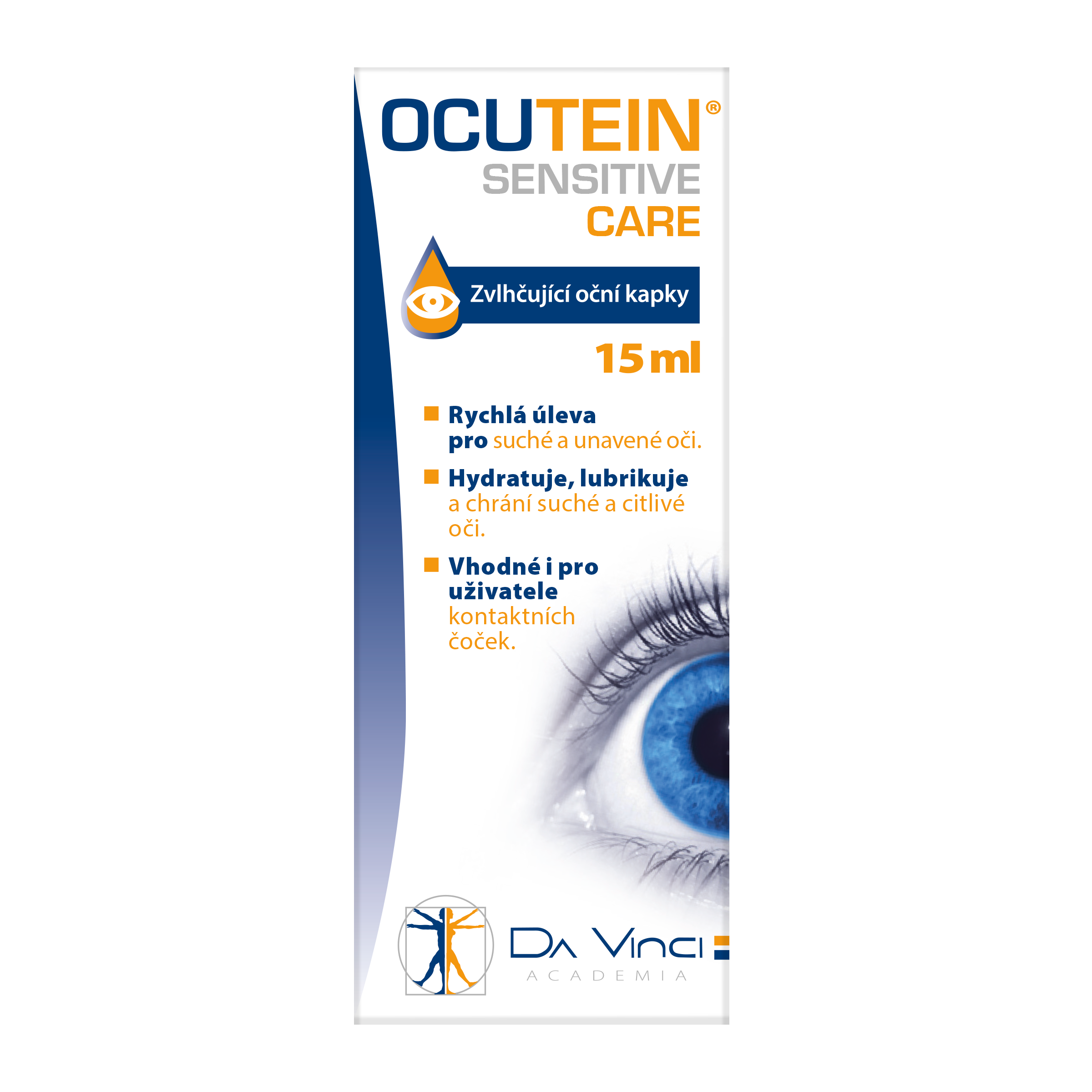 Při všech těchto činnostech dochází k nejintenzivnějšímu vysušování a dráždění oční rohovky. Oční kapky OCUTEIN® SENSITIVE CARE zajišťují díky obsahu hyaluronátu sodného vyšší lubrikaci oka. Jsou vhodné i pro velmi citlivé oči. Lze aplikovat přímo na nasazené kontaktní čočky. Vysoký objem (15 ml), dlouhá doba použitelnosti (90 dní po prvním otevření). Zdravotnický prostředek.