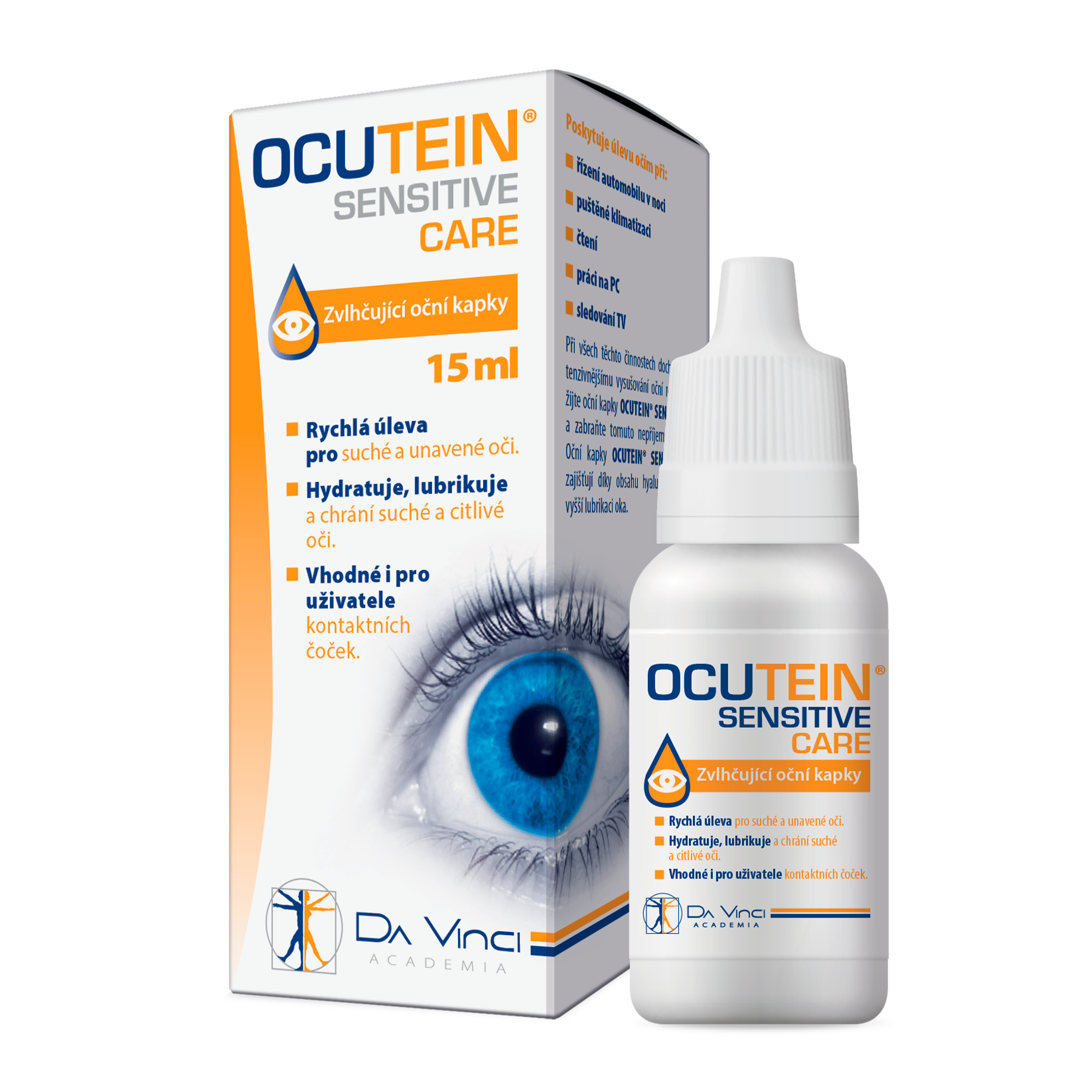 Při všech těchto činnostech dochází k nejintenzivnějšímu vysušování a dráždění oční rohovky. Oční kapky OCUTEIN® SENSITIVE CARE zajišťují díky obsahu hyaluronátu sodného vyšší lubrikaci oka. Jsou vhodné i pro velmi citlivé oči. Lze aplikovat přímo na nasazené kontaktní čočky. Vysoký objem (15 ml), dlouhá doba použitelnosti (90 dní po prvním otevření). Zdravotnický prostředek.