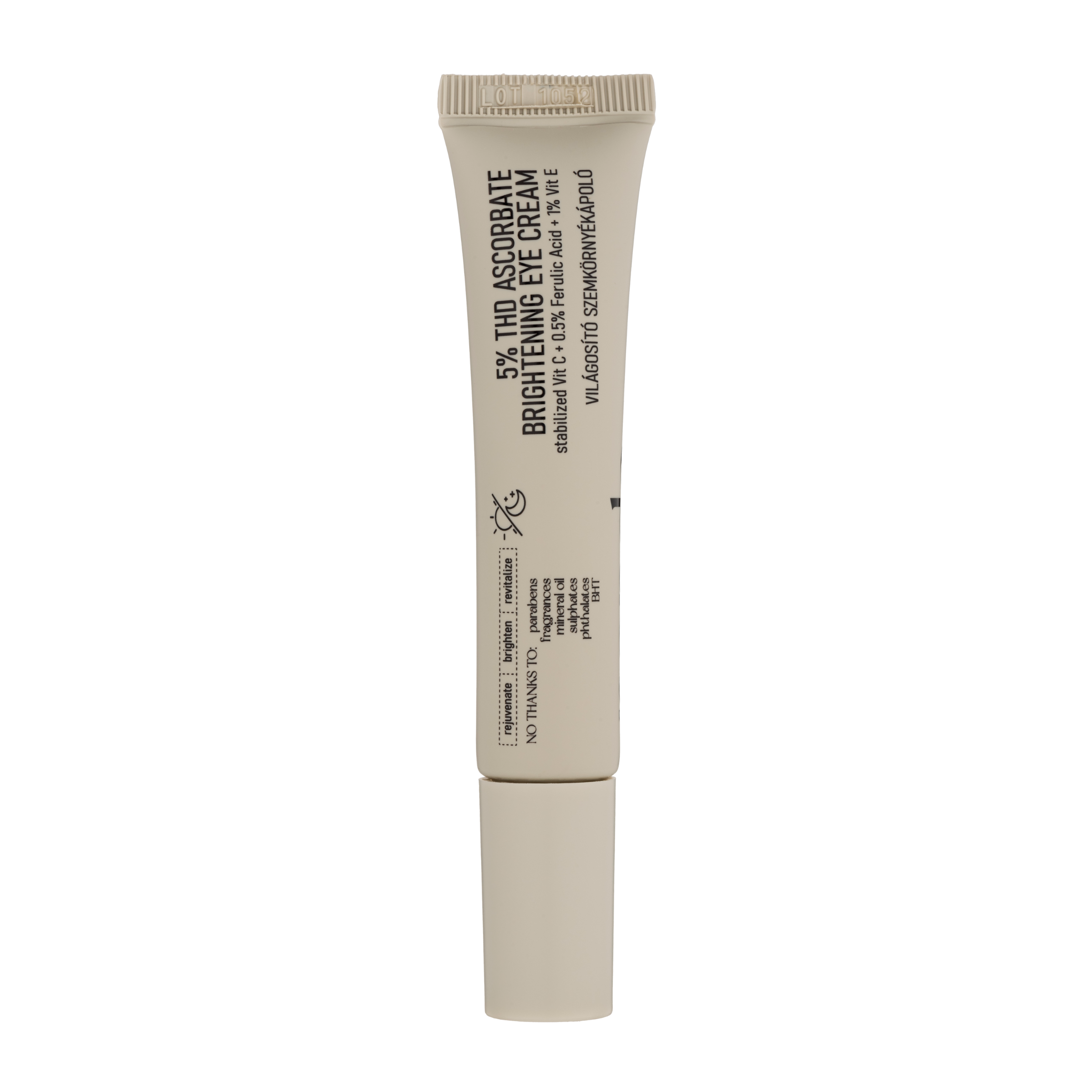 Oční krém s 5% THD Ascorbate je speciálně navržený k boji proti únavě a prvním známkám stárnutí pokožky kolem očí. Stabilní forma vitamínu C chrání před oxidací, redukuje pigmentaci a podporuje tvorbu kolagenu pro sjednocený tón pleti. Krém je obohacen také o vitamín E pro zesílenou antioxidační ochranu, kyselinu ferulovou pro ochranu před vnějšími vlivy a LMW kyselinu hyaluronovou, která pleť intenzivně hydratuje a pomáhá zmírnit jemné vrásky a tmavé kruhy pod očima. Výsledkem je svěží, hydratovaná a zářivá pleť kolem očí.