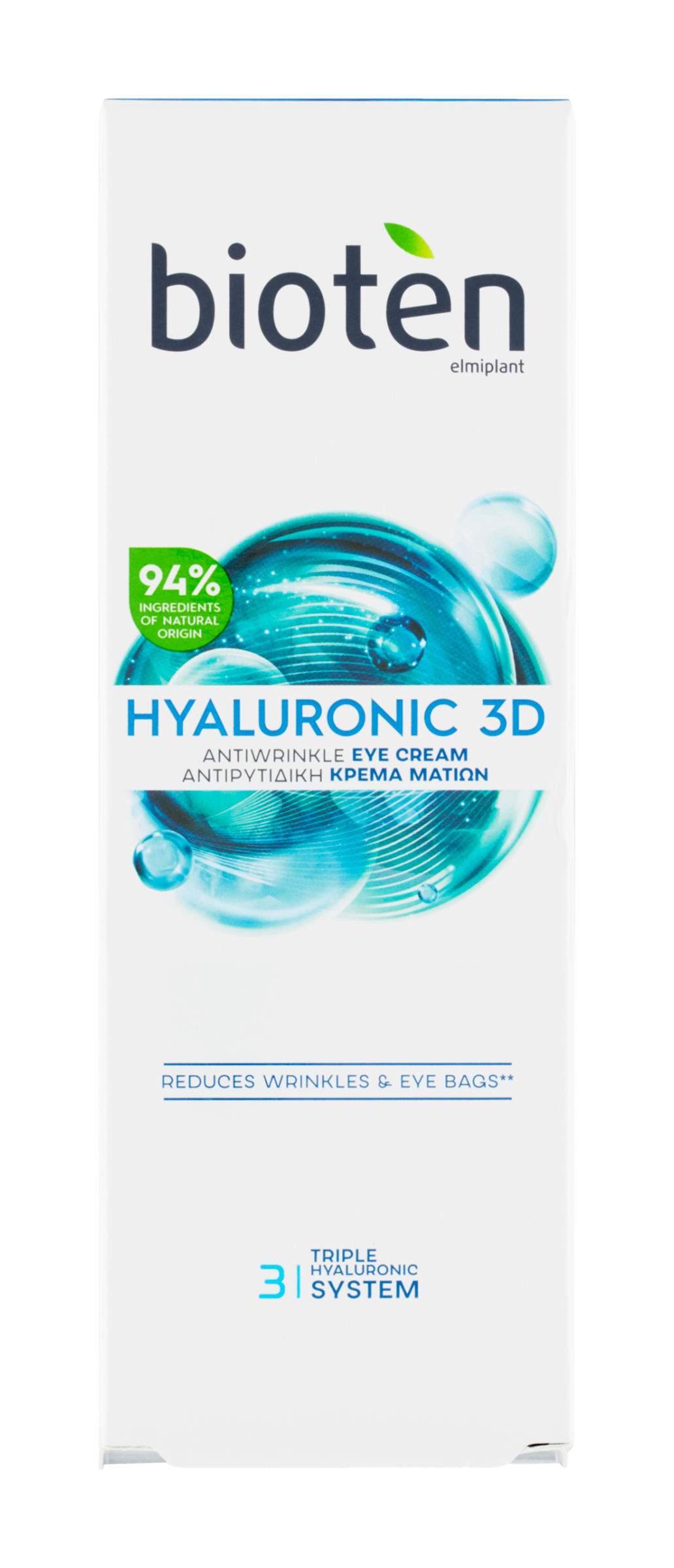 Bioten Hyaluronic 3D oční krém s 94 % ingrediencí přírodního původu je vysoce účinným přípravkem proti vráskám, který obsahuje Triple Hyaluronic System: