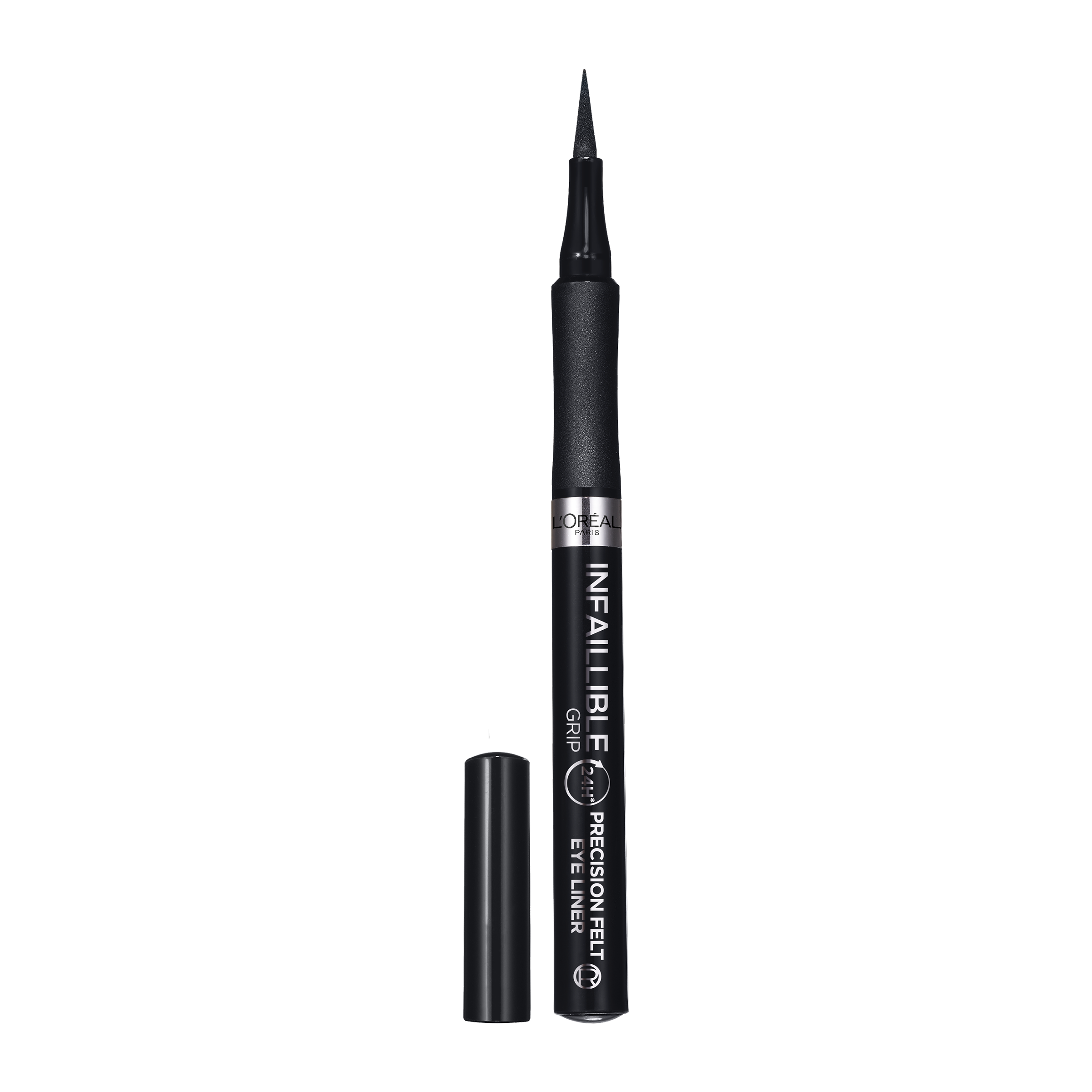 Infaillible Grip 27H Precision Felt od L'Oréal Paris je dlouhotrvající linka na oči s precizně tenkým hrotem i pro ty nejjejmněší linky. Linka má 0,4 mm houbičkový vlhký hrot s bavlněným jádrem, který v sobě drží pigment. Díky tomuto designu linka umožňuje perfektní tahy bez vynechání. Poskytuje 27 hodin ultra-odolnosti s odolností proti otisku, rozmazání a vodě.