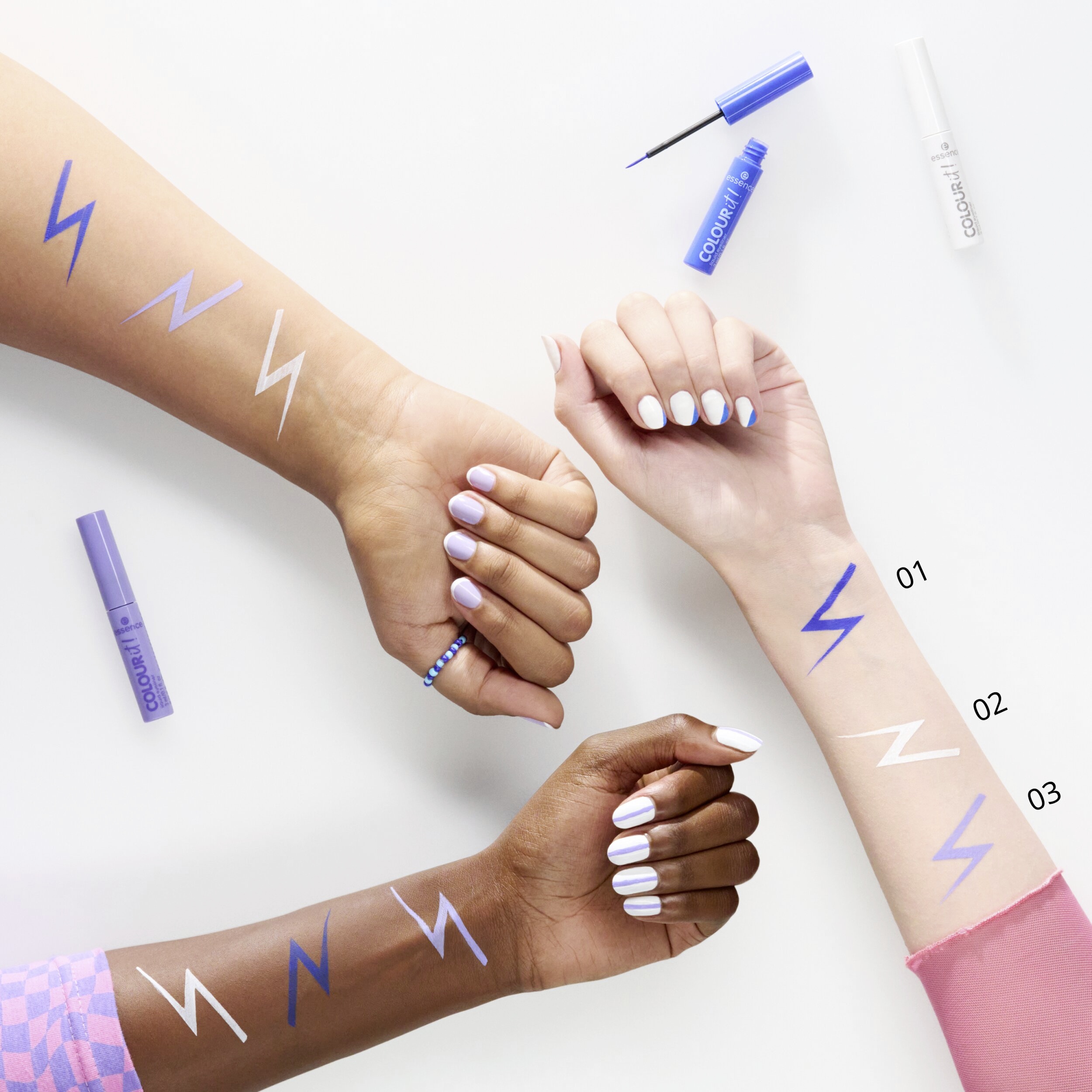 S essece tekutými očními linkami COLOUR it! 03 Light Lilac v úžasném pastelově fialovém odstínu, máte vše, co potřebujete pro dokonalé oční linky jedním tahem. Jejich barevná textura poskytuje podmanivý finiš s vysokým krytím.