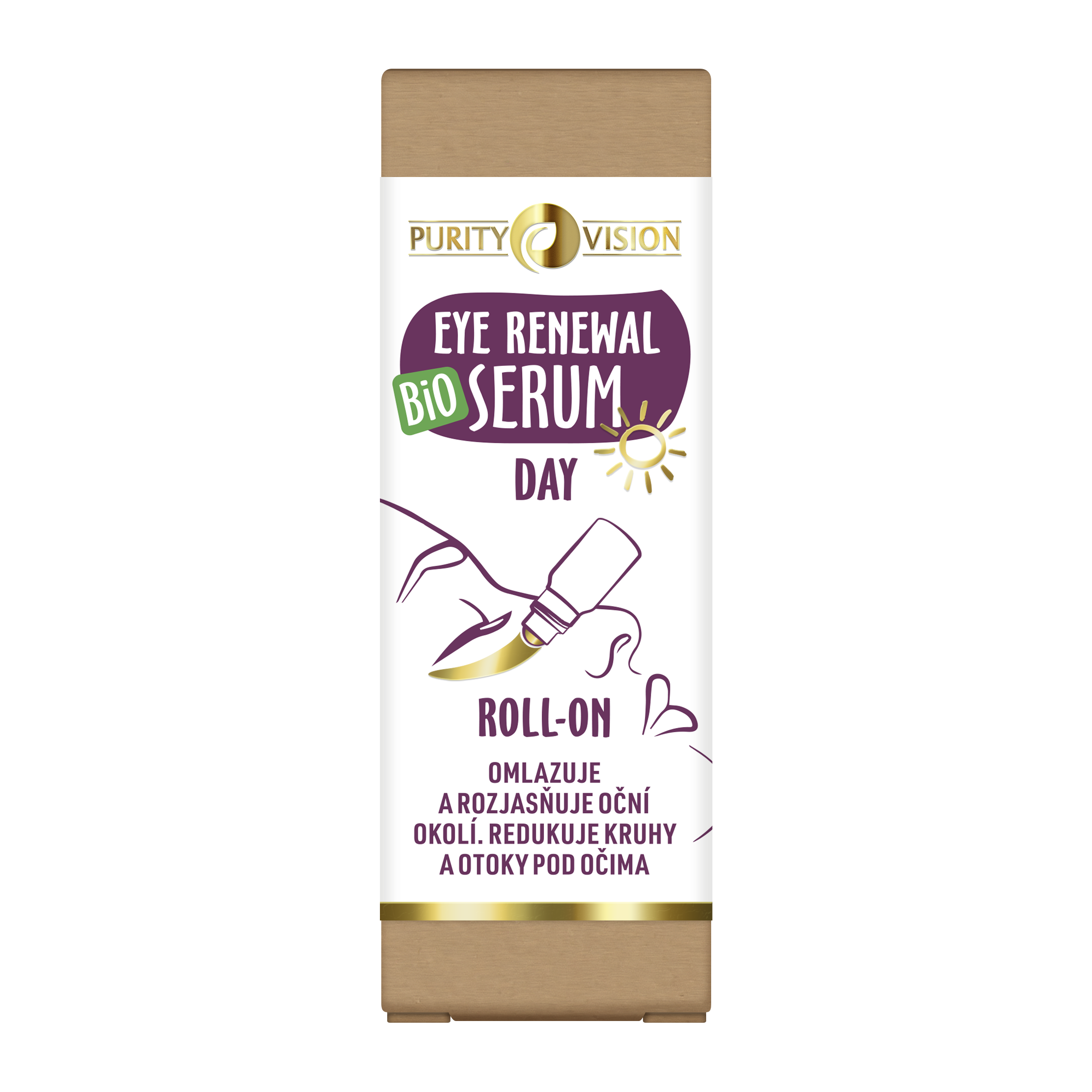 Omlazuje a rozjasňuje oční okolí. Redukuje kruhy a otoky pod očima. Bio Eye Renewal Serum pro ranní péči o oční okolí. Bio Aloe vera a Bio Růžová voda spolu s kys. hyaluronovou a veg. kolagenem zklidňují a hloubkově hydratují. Kofeinový extrakt rozzáří unavené oči a Bio Opunciový olej s koenzymem Q10 vyhlazuje vrásky.