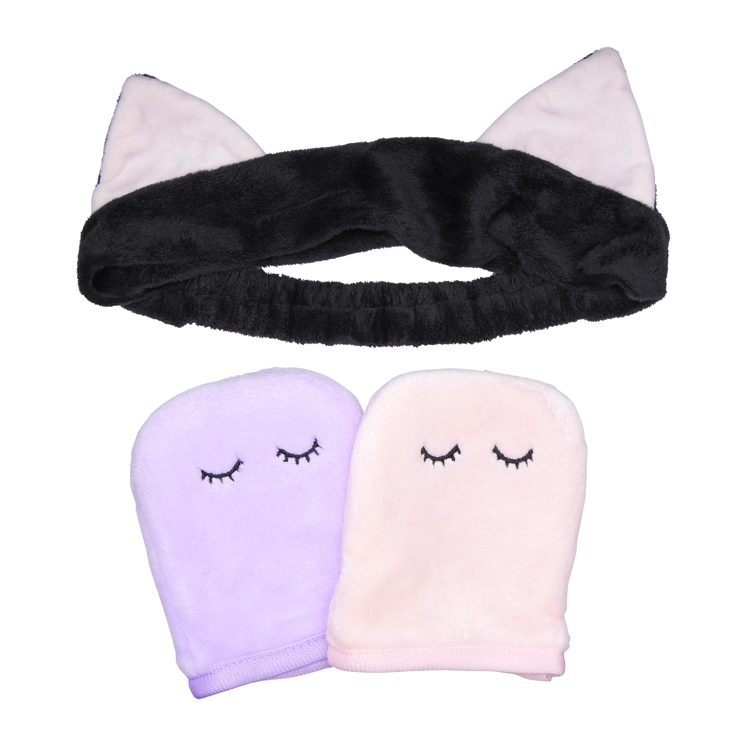 Páska na vlasy: Sada obsahuje odličovací pásku, která je vhodná pro odlíčení vlasové linie. Roztomilá sametově hebká kosmetická gumička do vlasů s kočičíma ušima udrží vaše vlasy vzadu a tím i váš obličej volný při odličování.