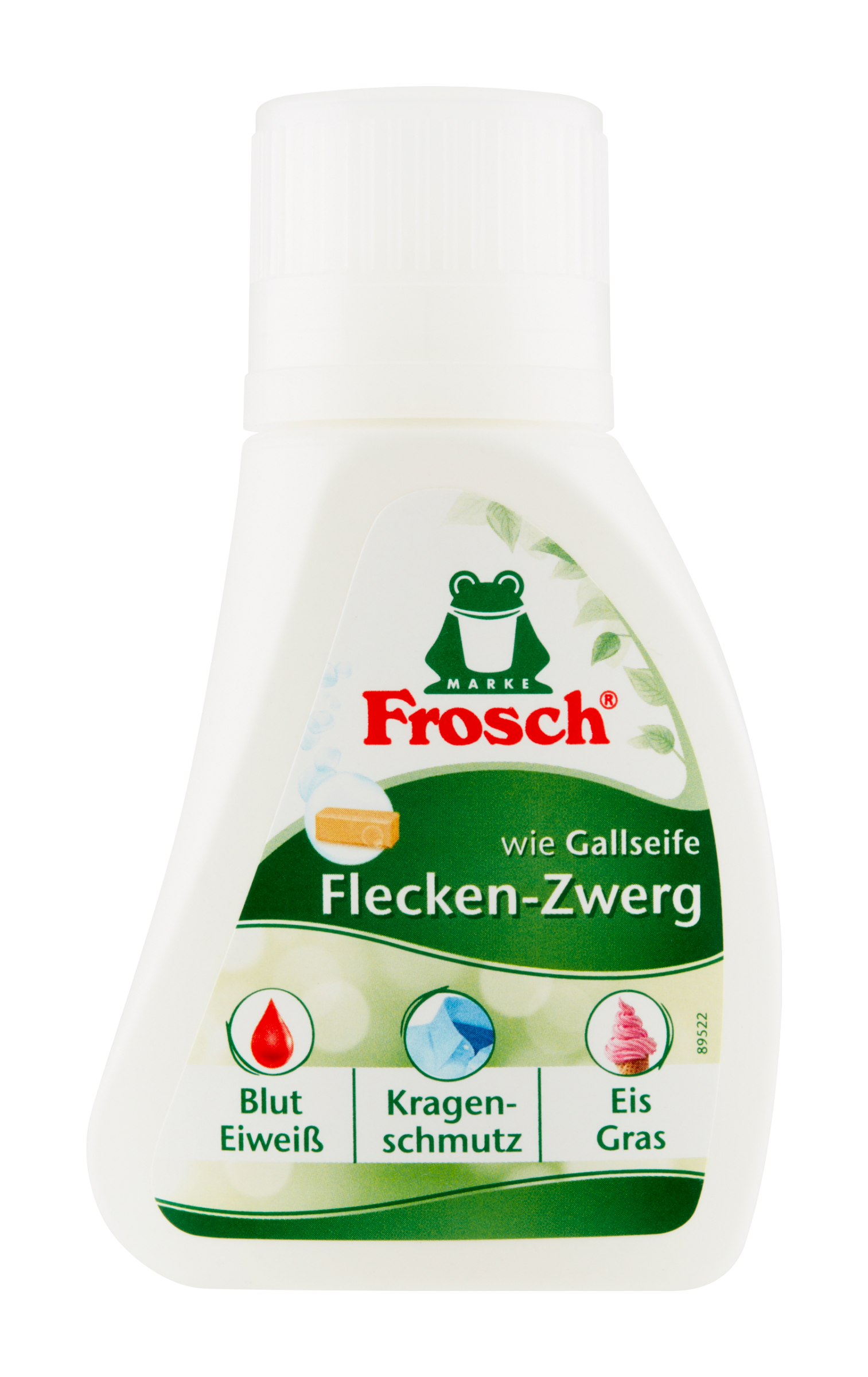 Vegan výrobek Frosch Odstraňovač skvrn à la „žlučové mýdlo“ přírodní silou odstraňuje skvrny před praním. Vyčistí různé druhy skvrn, např. skvrny od tuku, oleje, omáček, krve anebo vajíček.