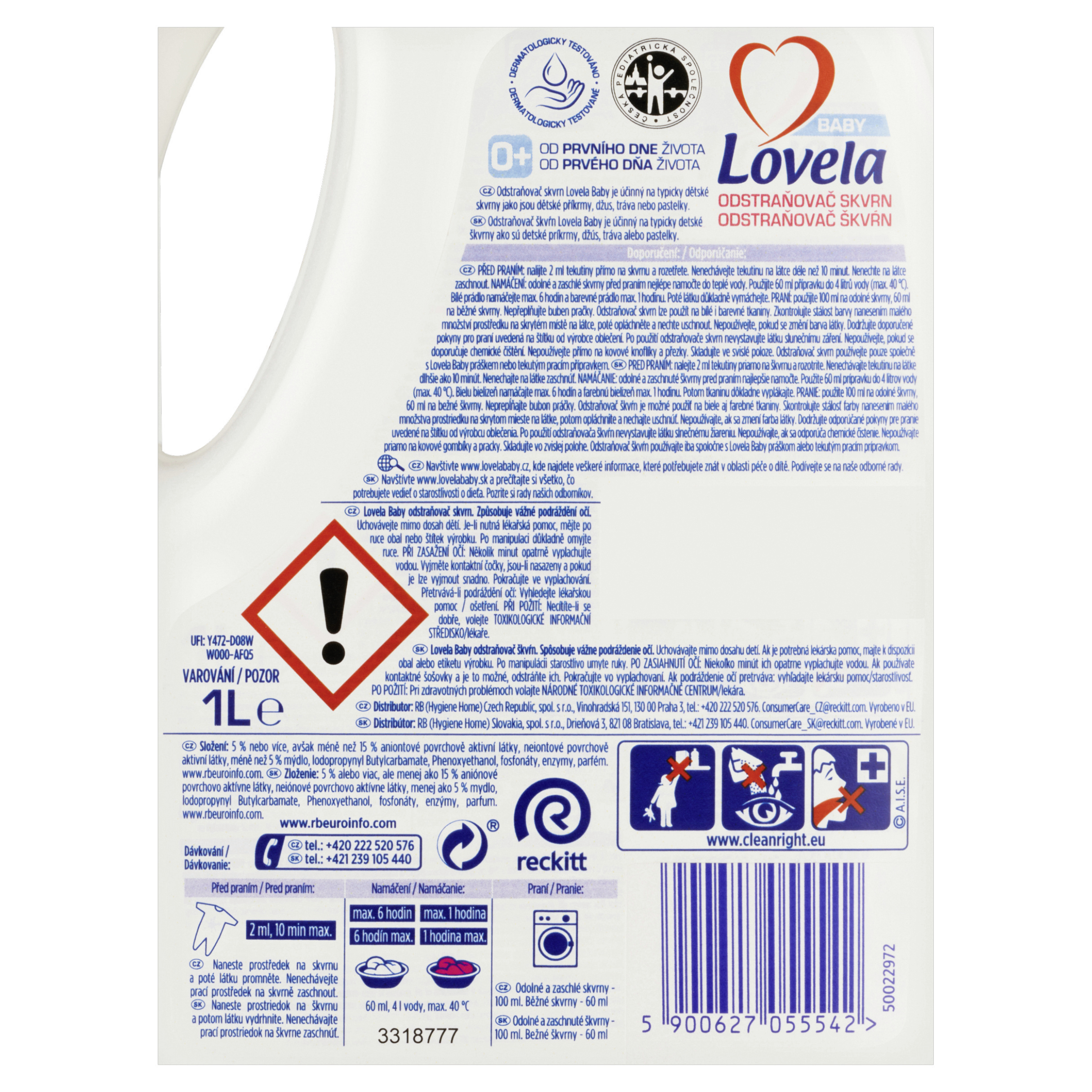 Odstraňovat skvrn Lovela Baby je účinný na typicky dětské skvrny jako jsou dětské příkrmy, džus, tráva nebo pastelky. Navštivte www.lovelababy.cz, kde najdete veškeré informace, které potřebujete znát v oblasti péče o dítě. Podívejte se na naše odborné rady. Česká pediatrická společnost.