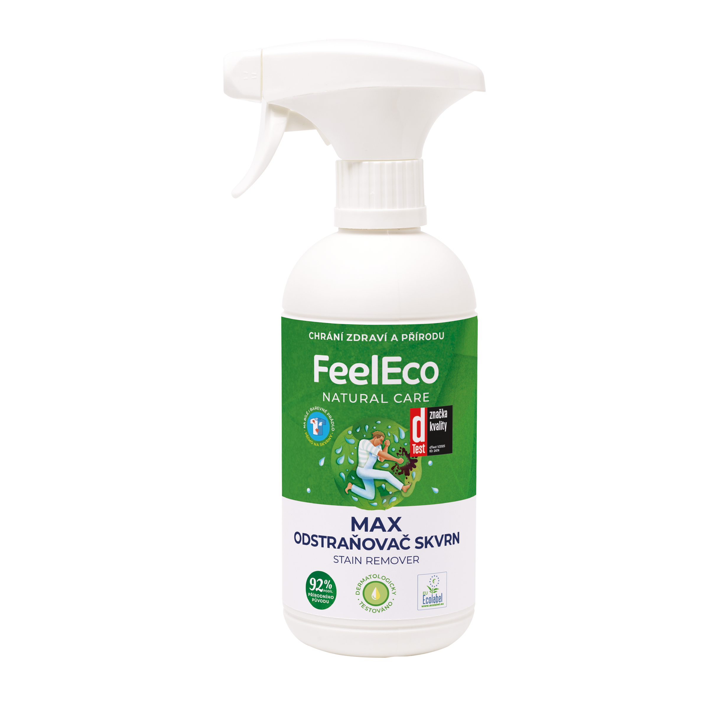 Účinný, koncentrovaný, tekutý odstraňovač skvrn s praktickým rozprašovačem na praní menších skvrn u znečištěného prádla. Vyčistí skvrny od různých potravin, mastnoty, kosmetiky, bláta, trávy i šmíru. Produkt je lehce parfémovaný, vhodný pro bílé i barevné prádlo. Ideální pro každodenní malé nehody.