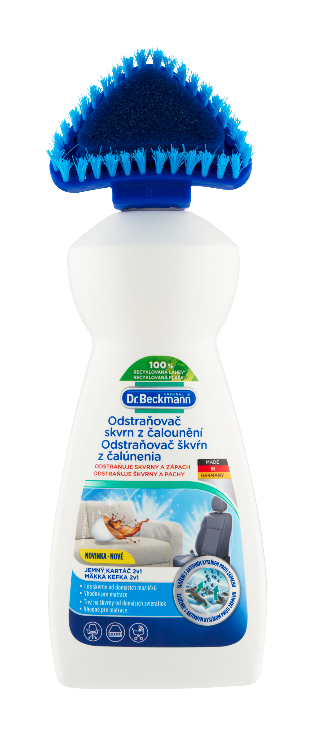 Efektivní odstraňovač skvrn a zápachu ze sedaček, autopotahů, matrací, kočárků, matrací a mnoha dalšího.