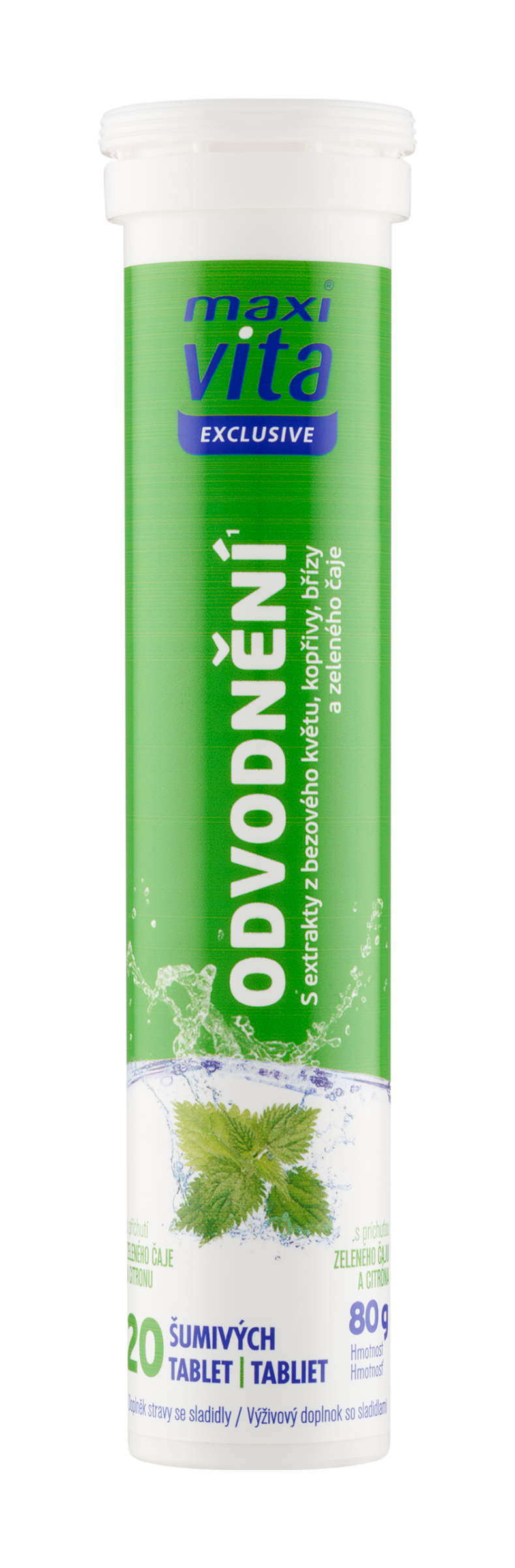 Odvodnění¹ Maxi Vita Odvodnění obsahuje ¹extrakty z kopřivy, bezového květu a zeleného čaje, které pomáhají z těla vylučovat nadbytečnou vodu.