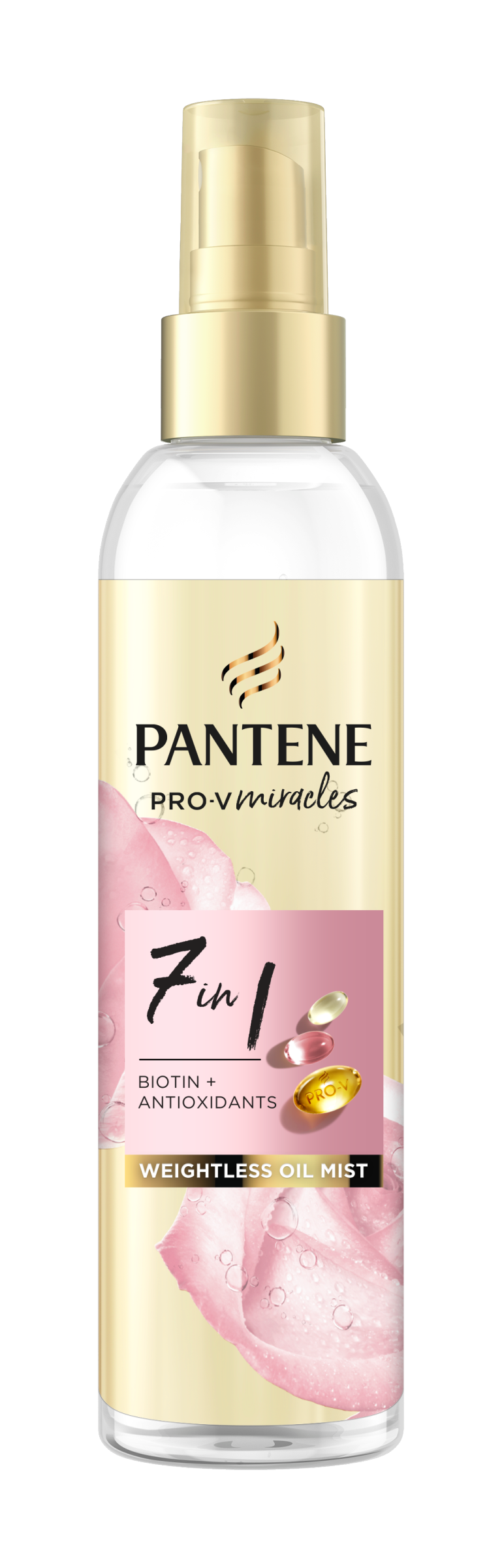 Vlasový olej ve spreji Pantene Miracles Lift'N'Volume 7v1 nabízí sedm výhod: posiluje slabé vlasy, aby byly odolné proti poškození způsobenému úpravou účesu, chrání před vznikem roztřepených konečků, pomáhá usnadňovat rozčesávání, chrání oslabené vlasy před přístroji pro tepelnou úpravu účesu, vytváří lehký lesk, potlačuje krepatění a polétavost a propůjčuje lehkou svěží vůni. Jeho složení je obohaceno o biotin, antioxidanty a Pro-V a je vhodné pro každodenní používání. Pro dosažení nejlepších výsledků používejte kompletní péči o vlasy Lift'N'Volume: šampon, kondicionér, a vlasový olej.