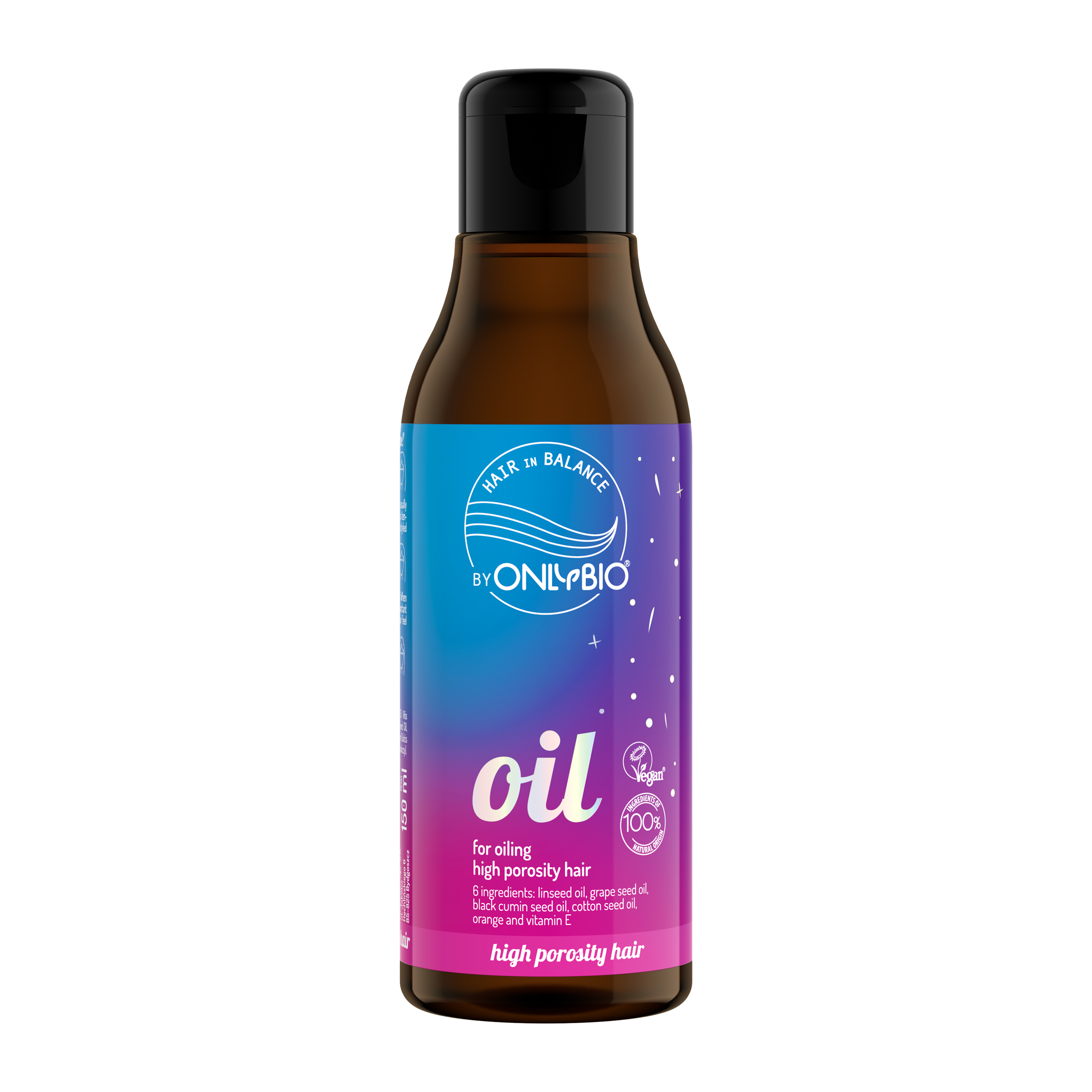 Olejování vlasů s vysokou pórovitostí. Informace: Vlasy s vysokou pórovitostí se velmi často odbarvují, zřídkakdy bez nějakého typu barviva, silně se fénují a stylují velmi horkými nástroji. Nejlepší pro vlasy s vysokou pórovitostí, které mají tendenci krepatět, lámat se a být velmi suché a zakřivené. Výhody: Pečlivě vybrané vícenenasycené oleje, jako je lněný olej, olej z hroznových jader a olej z černého kmínu, jsou velmi výživné a účinné hydratační látky, které dodávají vlasům objem, aniž by je zatěžovaly. Díky tomu jsou vaše vlasy zdravé a vypadají hladce a leskle. Navíc vám zvedne náladu osvěžující vůně hořkého pomeranče!