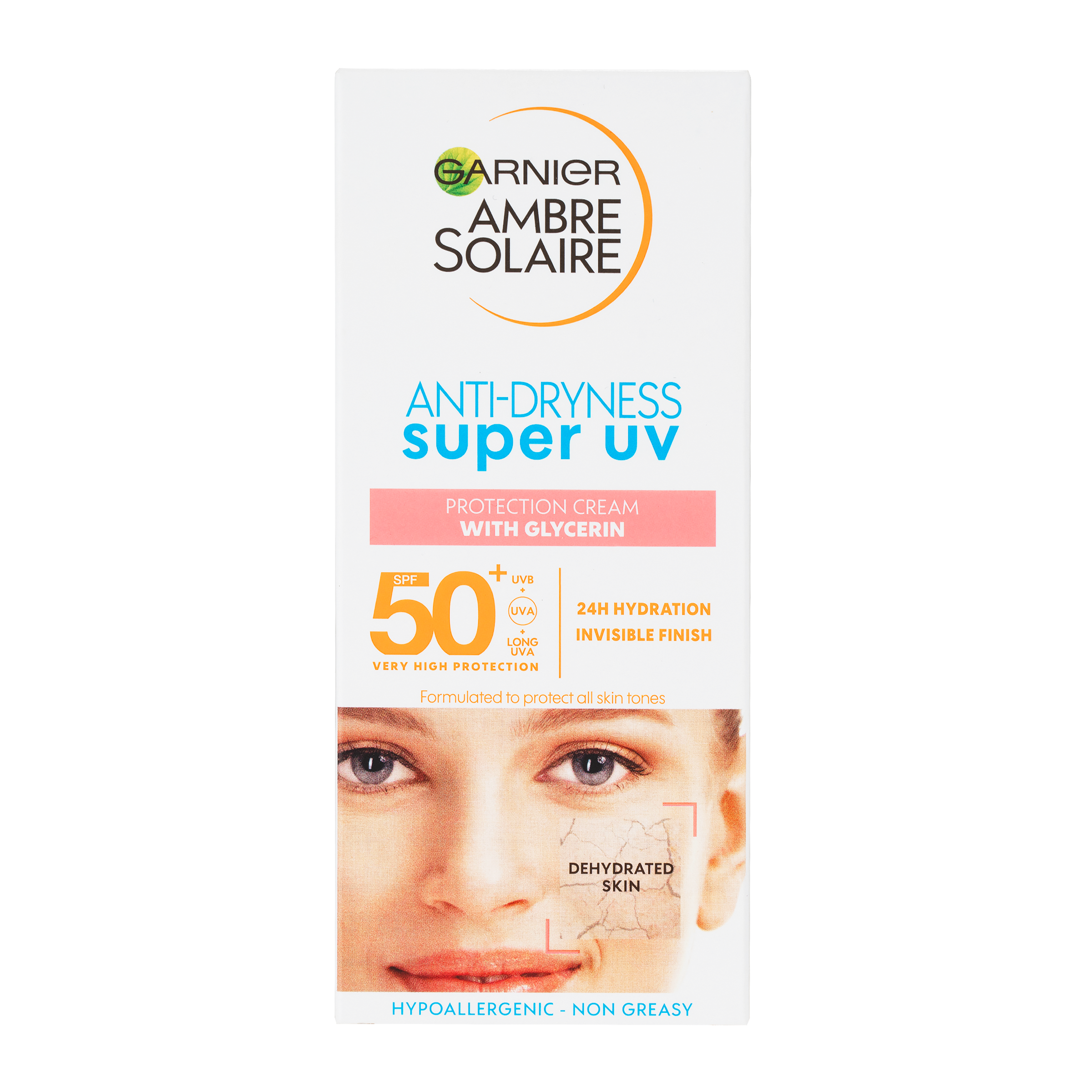 Vyvinuto pro citlivou pokožku obličeje. Anti-Dryness Super UV ochranný krém nabízí vysokou ochranu a zároveň hydratuje pokožku až 24 hodin. Díky lehké textuře je příjemný a poskytuje každodenní hydrataci vysušené pokožce bez zanechání mastného filmu. Nezanechává stopy. Neucpává póry. Složení odpovídá 100 % evropských doporučení pro ochranu proti škodlivým účinkům UVA a UVB záření.