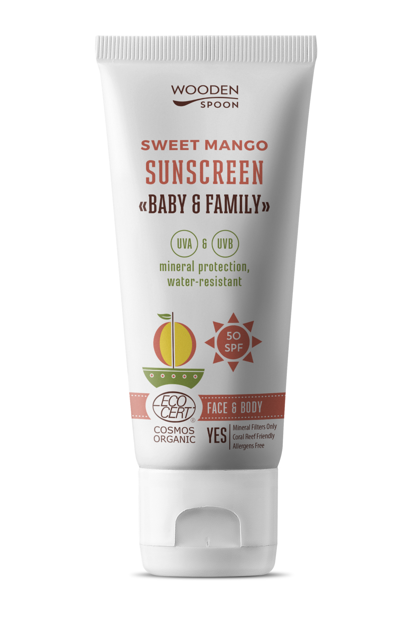 WoodenSpoon Mléko na opalování Mango SPF50 – Voda a teplo. Dva pojmy, které jsou nedílnou součástí léta. A co vaše pokožka? Je na toto období připravena? S opalovacím tělovým mlékem od značky WoodenSpoon se nemusíte vůbec obávat spálení nebo poškození pokožky horkým sluncem a můžete si stále užívat bezstarostné chvíle, které léto nabízí. Toto opalovací mléko je určeno pro celou rodinu, díky svému šetrnému složení je vhodné i pro tu nejcitlivější dětskou pokožku.