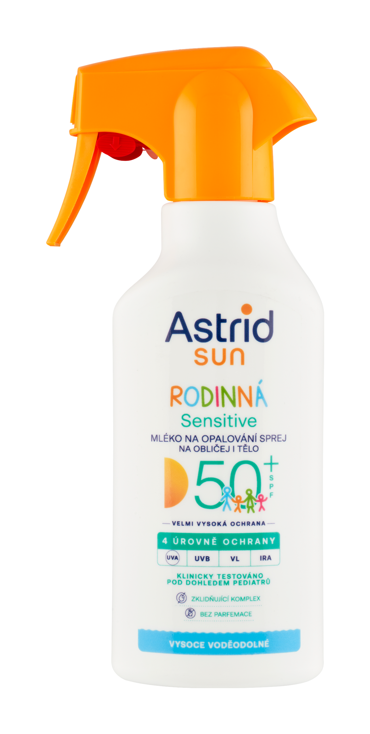 Mléko na opalování ve spreji Astrid Sun Sensitive Rodinná je jiný produkt než Astrid Sun a nabízí mnohem více než jen základní ochranu proti slunci. Zohledňuje speciální dermatologické potřeby dětí i dospělých a poskytuje optimální ochranu před 4 hlavními typy slunečního záření (UVA, UVB, VL*, IRA*), které poškozují pokožku. Zároveň pomáhá minimalizovat riziko alergických reakcí a díky kombinaci kyseliny hyaluronové s betainem zklidňuje citlivou pokožku a udržuje ji dlouhodobě hydratovanou. Reef safe**.