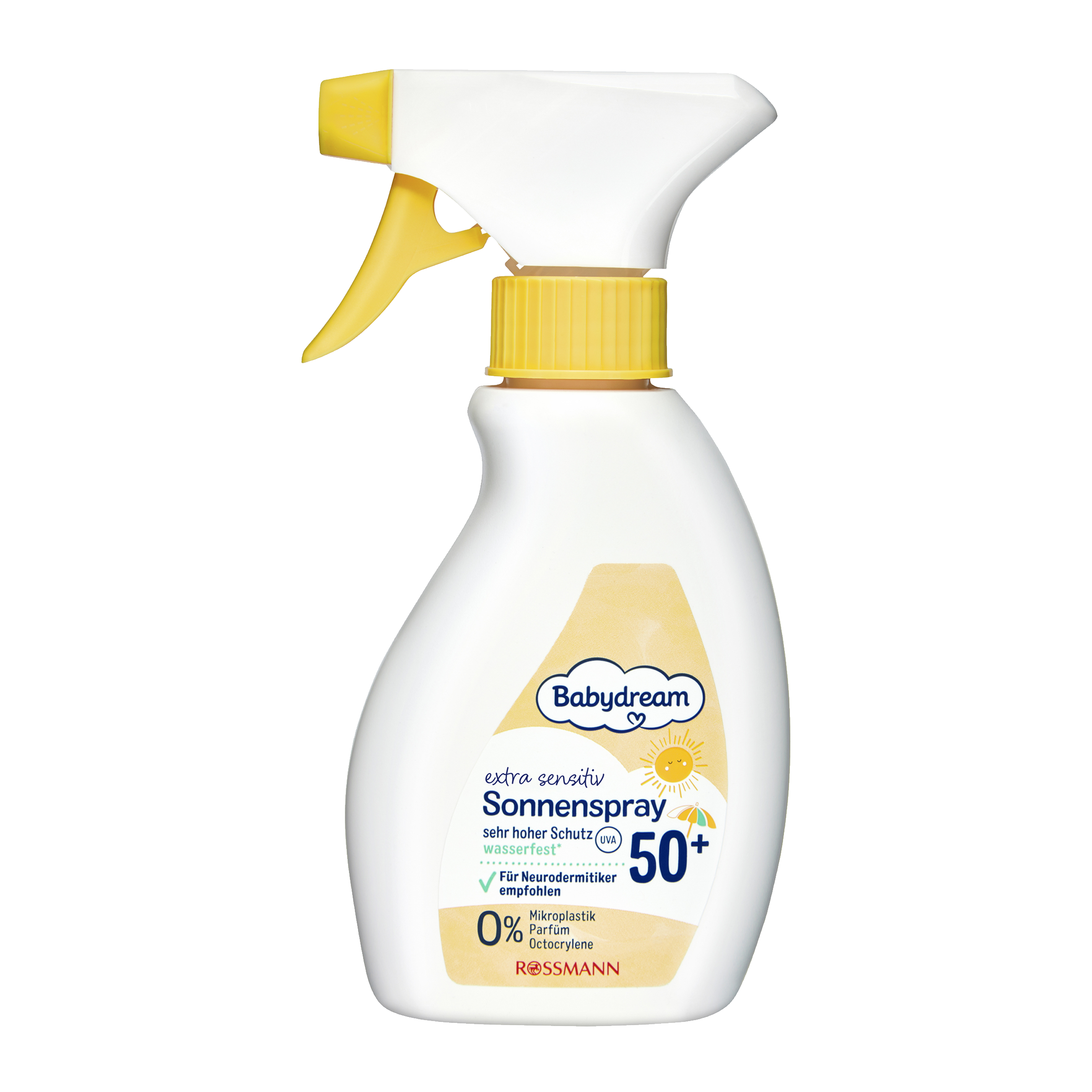 Opalovací sprej Babydream Extra Sensitiv Sonnenspray SPF 50+ poskytuje velmi vysokou ochranu před slunečním zářením a je určen zejména pro velmi citlivou nebo atopickou pokožku. Širokospektrální ochrana pomáhá chránit pokožku před UVA a UVB zářením, které může způsobovat spálení a poškození pokožky. Šetrné složení je bez parfemace a bez oktokrylenu, takže je vhodné i pro osoby s atopickou dermatitidou. Praktická sprejová aplikace umožňuje rychlé a rovnoměrné nanesení přípravku na pokožku. Přípravek je navíc voděodolný a pomáhá chránit pokožku i při koupání nebo vodních aktivitách.