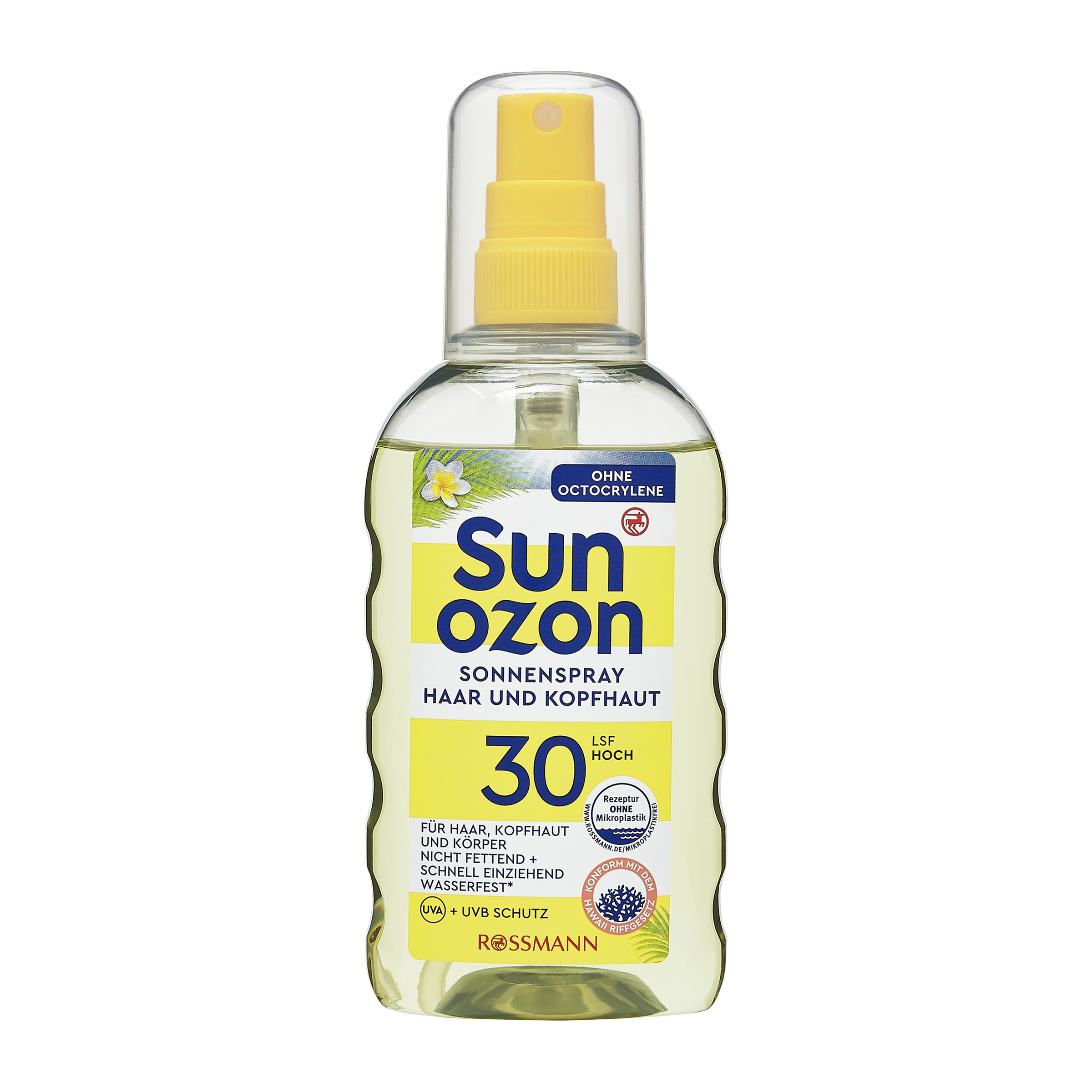 Opalovací sprej na pokožku hlavy a vlasy SPF30 chrání před škodlivým slunečním zářením, aniž by vlasy zatěžoval nebo zanechával mastný film. Speciální složení s vitamínem E a UVA/UVB filtry pomáhá předcházet spálení a zároveň pečuje o pokožku hlavy i o vlasy. Lehká textura se rychle vstřebává, nezatěžuje vlasy a je vhodná i pro ochranu těla. Voděodolná receptura udržuje účinnost i při pobytu ve vodě. Složení bez oktokrylenu a mikroplastů splňuje havajský zákon o ochraně korálových útesů.