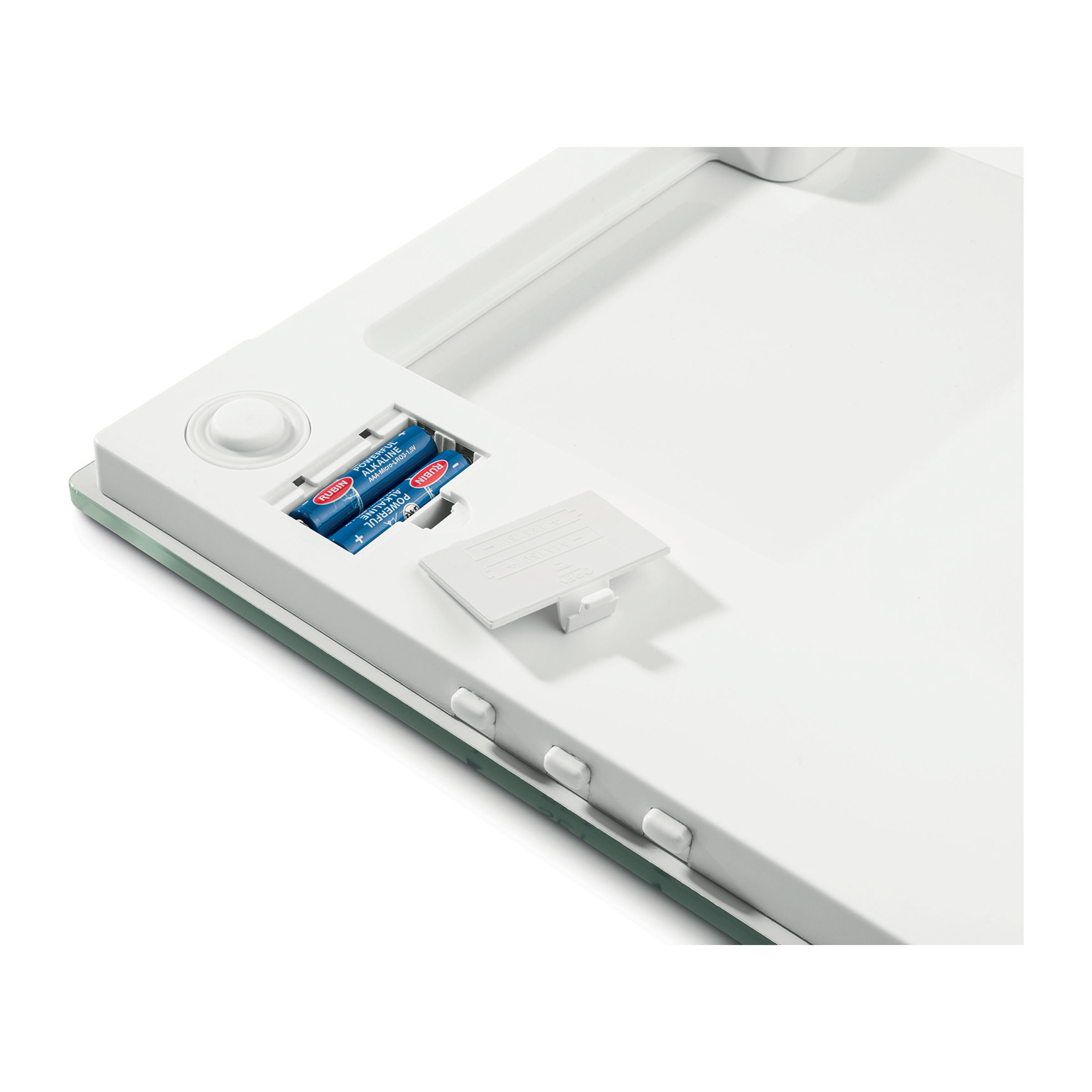 Osobní digitální váha v moderním skleněném designu, s čidly pro měření vody a tuku v těle.