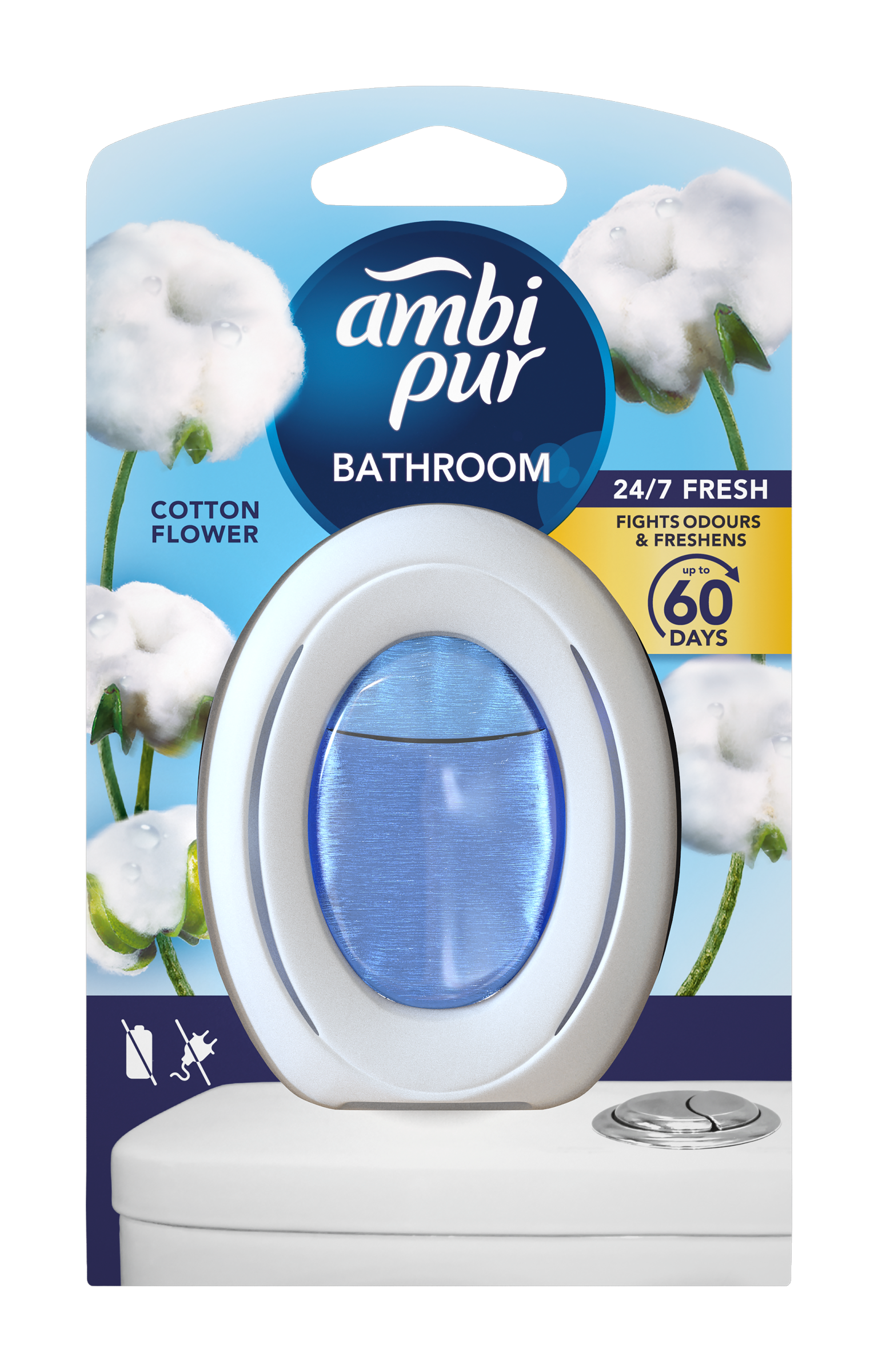 Náš první koupelnový osvěžovač vzduchu pro nepřetržité použití bez elektřiny odstraňuje pachy ze vzduchu, a navíc zabraňuje jejich usazování na měkkých površích, jako jsou ručníky, vany a sprchové závěsy. Díky jedinečné technologii Odour ClearTM přináší Ambi Pur Bathroom nepřetržitou svěžest po dobu až 60 dnů, aby byla vaše koupelna neustále připravená přijmout hosty. Protože nepotřebujete elektřinu ani baterie, Ambi Pur Bathroom se pohodlně a snadno používá. Je dostupný v různých vůních.