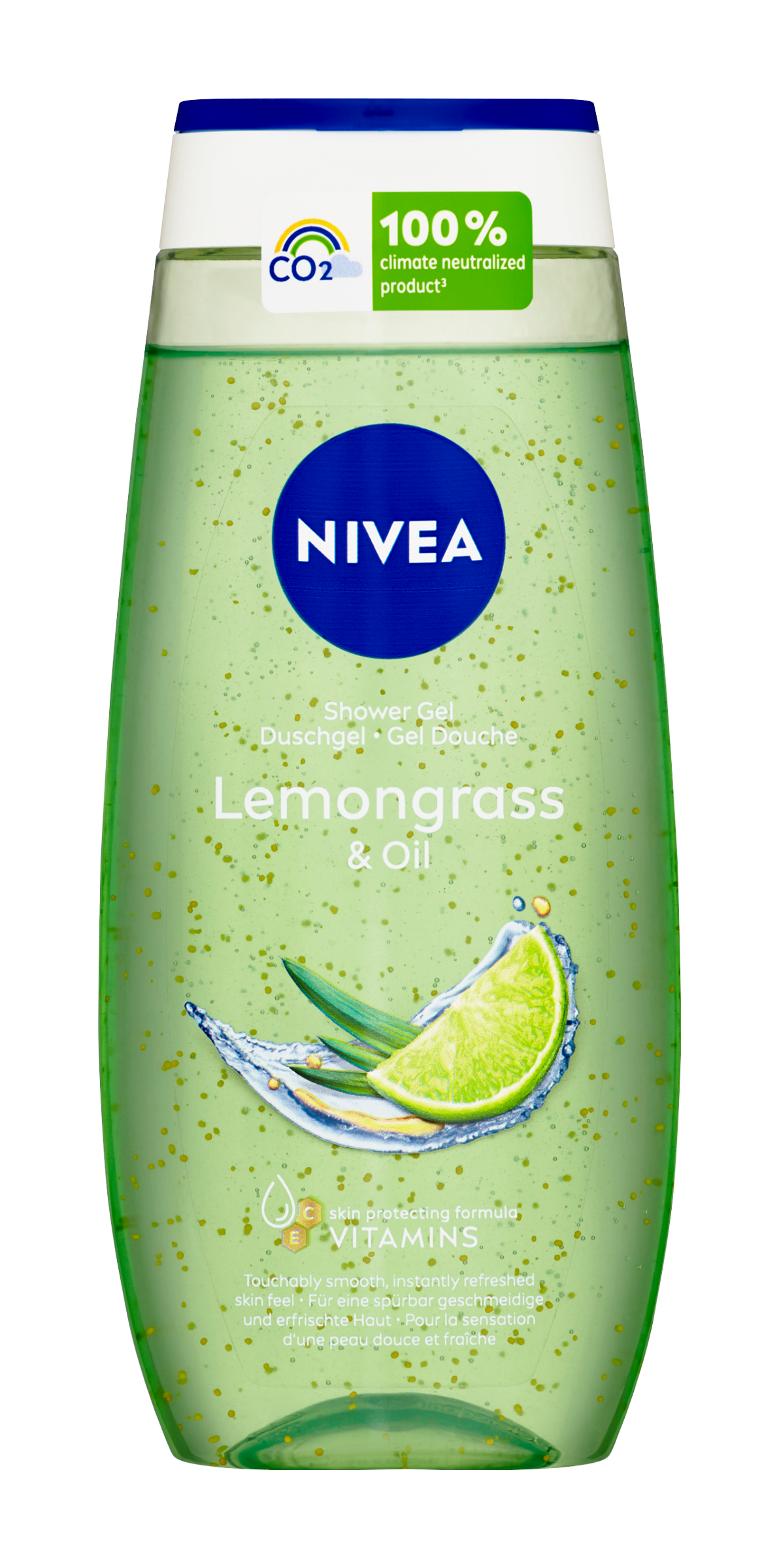 Osvěžující sprchový gel Lemongrass & Oil s vitamínem C a E, olejovými perličkami a se svěží vůní citronové trávy zabraňuje vysušování pokožky. Nenarušuje přirozenou mikrobiální vrstvu pokožky. Klimaticky neutralizovaný výrobek (emise CO₂ jsou kompenzovány pomocí certifikovaných klimatických projektů).