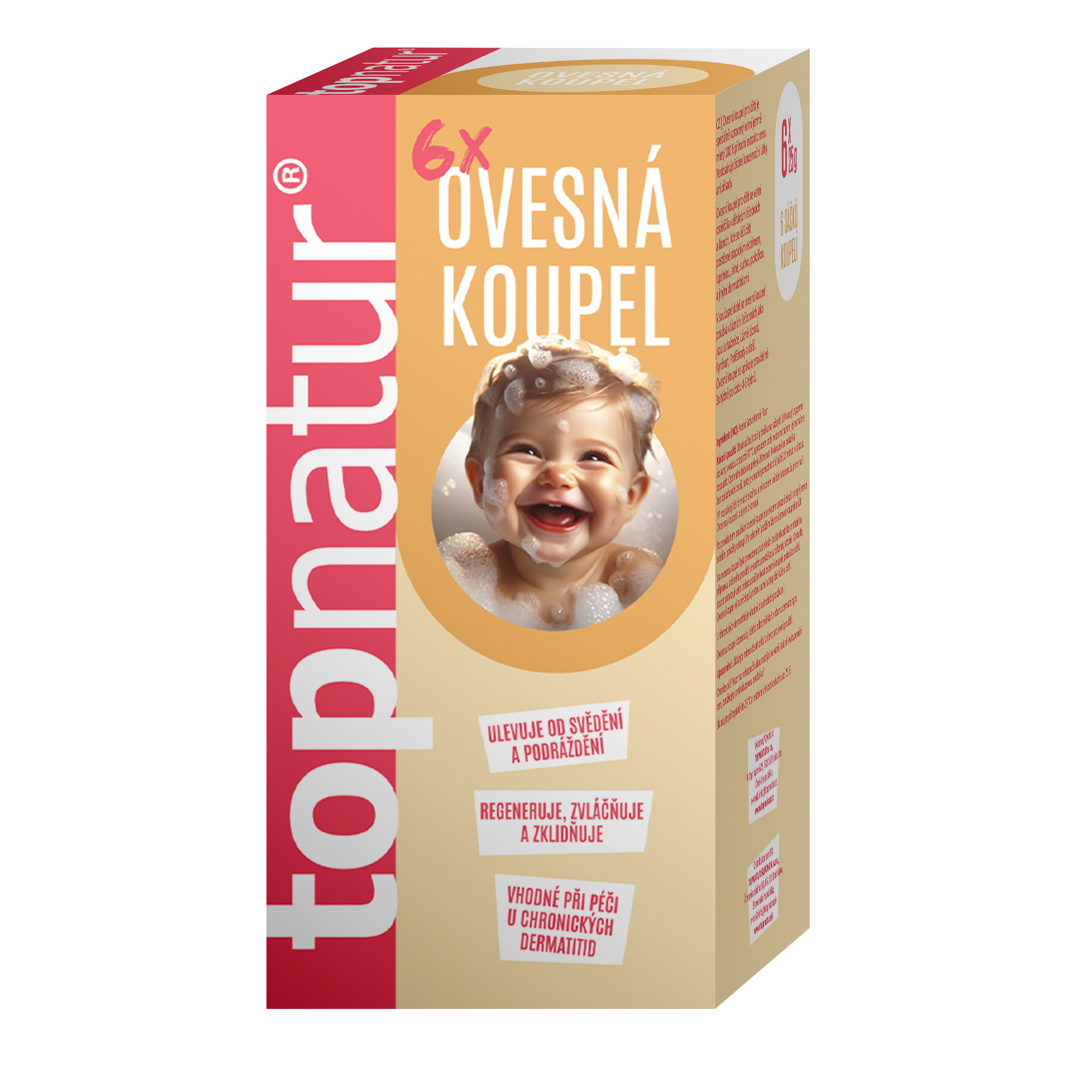 Ovesná koupel pro děti je speciální technologií upravený velmi jemně mletý 100% přírodní extrakt z ovsa. Neobsahuje žádné konzervační látky, přísady a díky tomu je vhodná i pro miminka. Na ovesnou koupel pro děti byla provedena studie kožní snášenlivosti kosmetického přípravku určeného pro děti se suchou pokožkou a příznaky atopie. Výsledky studie potvrzují velmi dobrou snášenlivost ovesné koupele pokožkou dětí. Ovesná koupel pro děti výrazně zlepšuje stav suché a atopické kůže u dětí.
