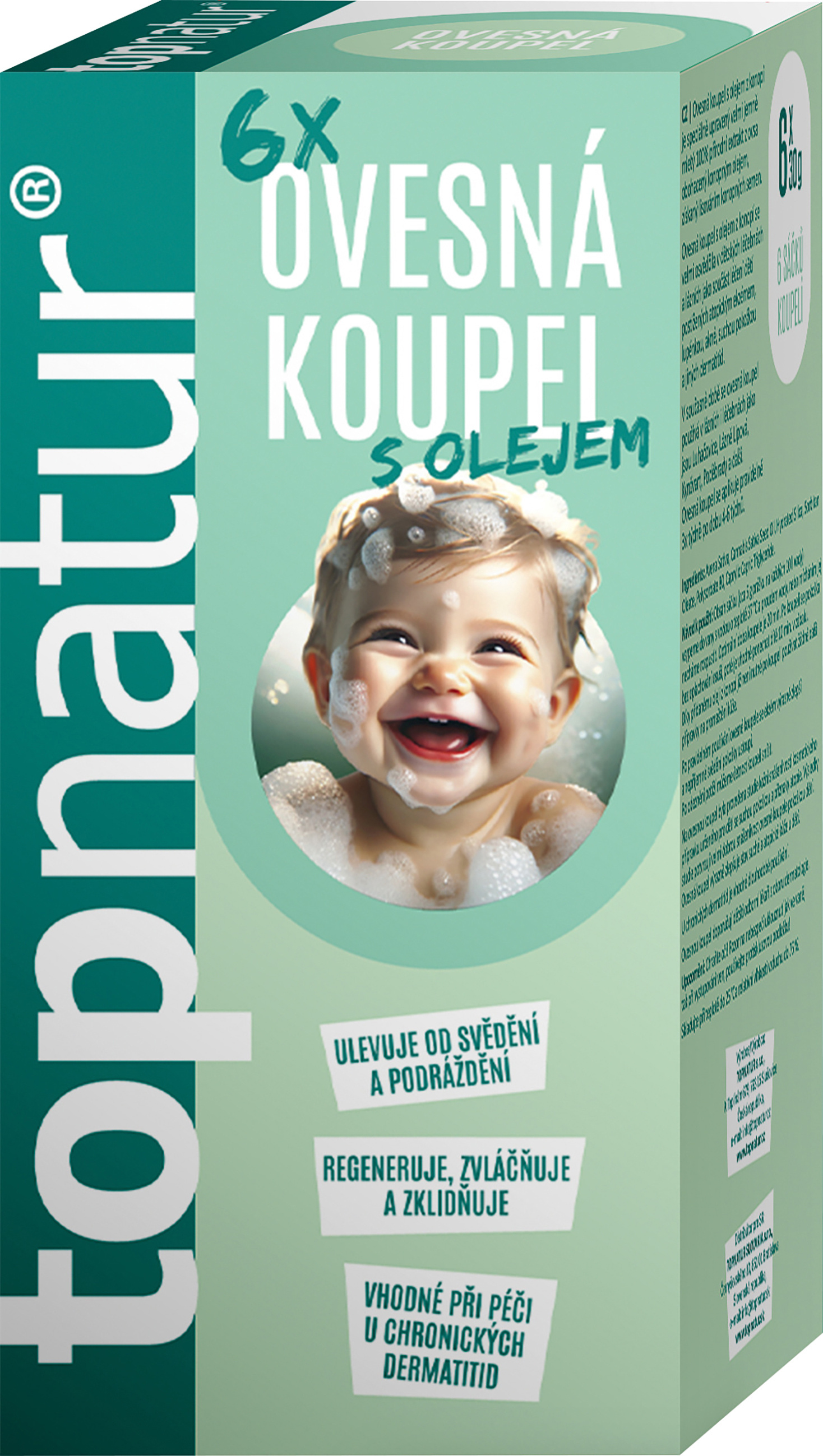 Ovesná koupel s olejem z konopí je speciálně upravený jemně mletý 100% oves obohacený konopným olejem, získaný lisováním konopných semen. Regeneruje, zvláčňuje, zklidňuje, ulevuje od svědění a podráždění. Velmi se osvědčila v dětských léčebnách a lázních jako součást léčení dětí postižených atopickým ekzémem, akné, suchou pokožkou a jiných dermatitid.