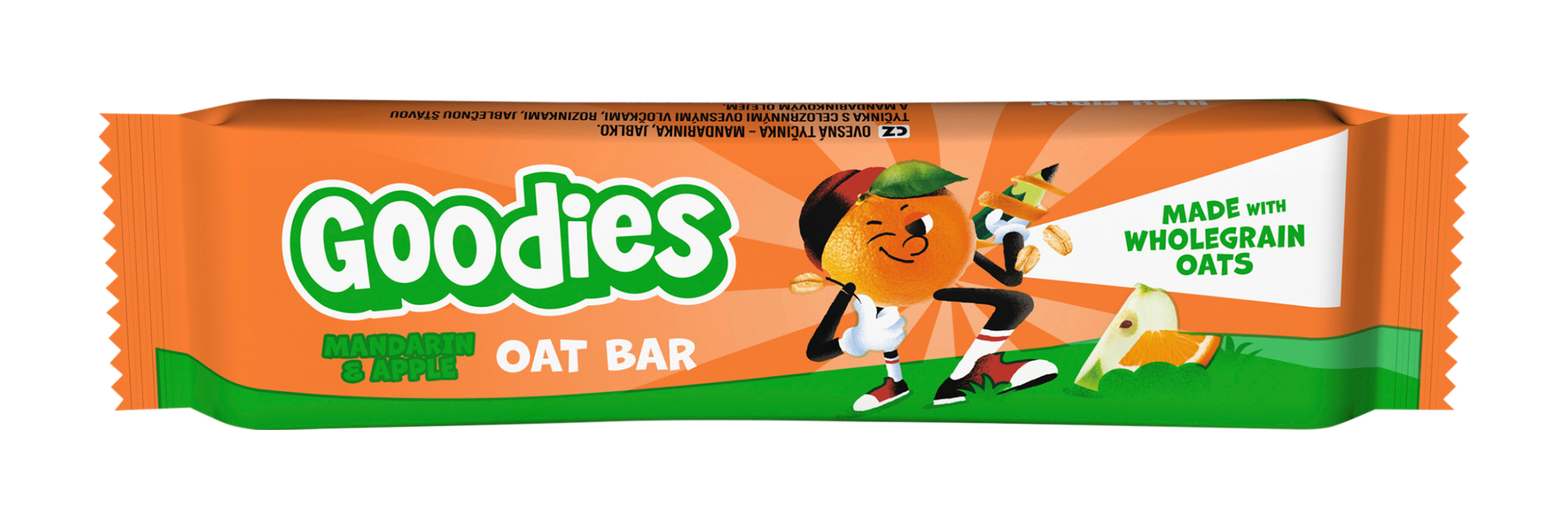 Goodies ovesná tyčinka mandarinka a jablko s celozrnnými ovesnými vločkami a vysokým obsahem vlákniny. Žádné přidané cukry, plno skvělé chuti. Šťavnatá a měkká svačinka pro předškoláky, ideální na cesty nebo do svačinkových boxíků. Goodies ovesné tyčinky obsahují samé dobré ingredience. Jsou vyrobeny z celozrnných ovesných vloček a slazené pouze ovocem. Neobsahují přidaný cukr ani sůl. Velikostí přesně padnou do dětských rukou a zaženou malý hlad nebo chuť na sladké.