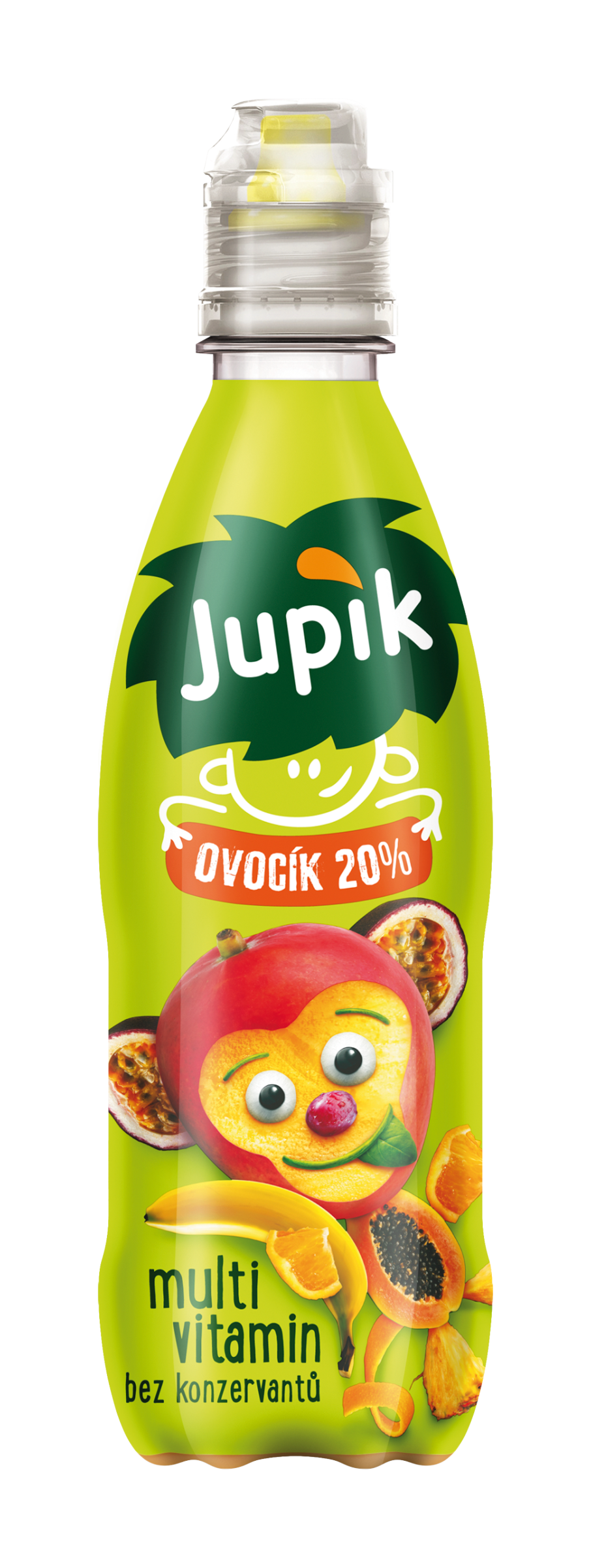 Voda, směs koncentrátů z 13 druhů ovoce (jablek, pomerančů, citrónů, hroznů, mandarinek, ananasů, meruněk, manga, maracují, banánů, guave, broskví, papájí), cukr, glukózo-fruktózový sirup, kyselina: kyselina citrónová, antioxidant: kyselina L-askorbová, vitamíny, aroma, barviva: karoteny, beta-apo-8'-karotenal, sladidlo: steviolglykosidy