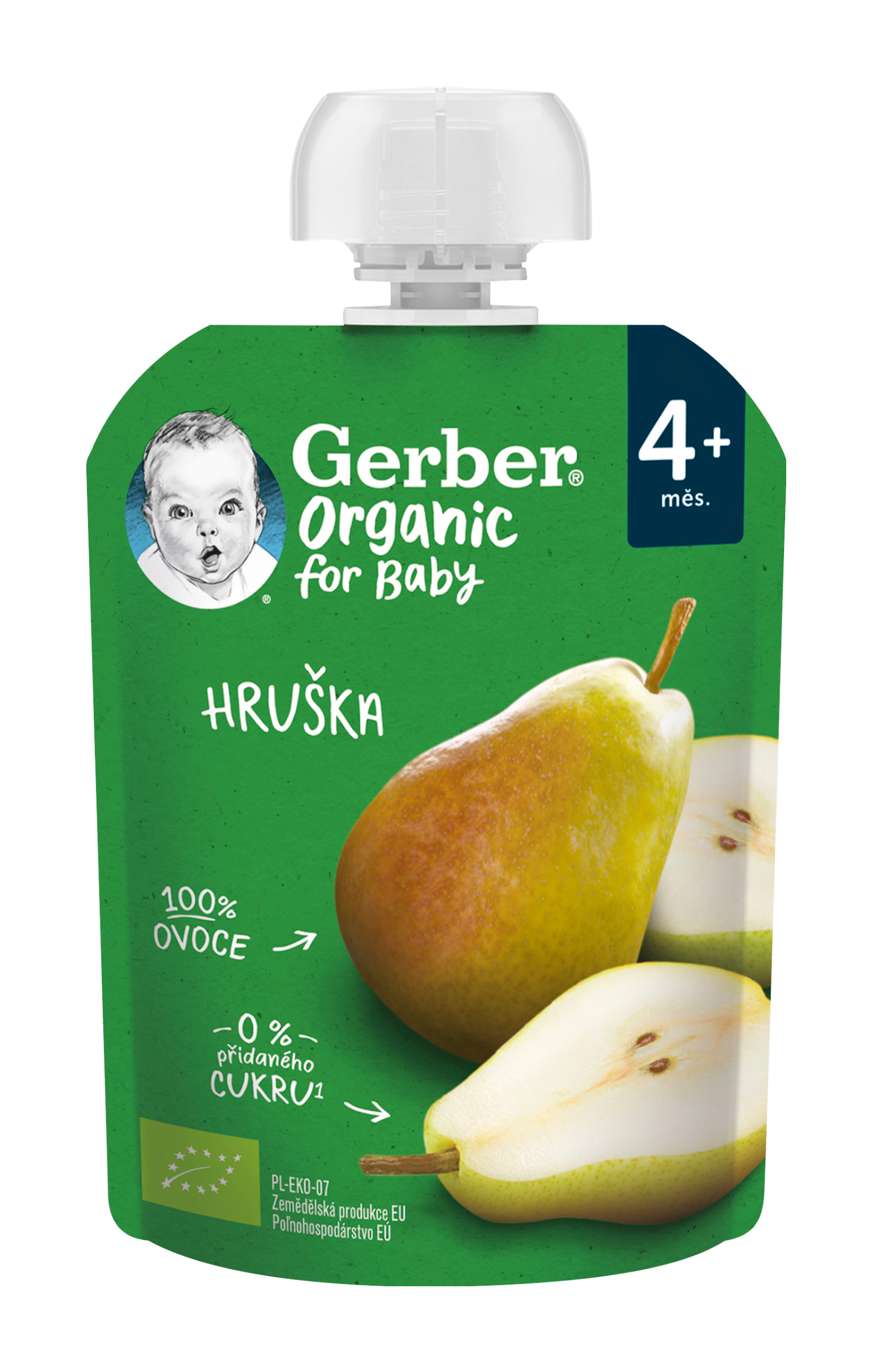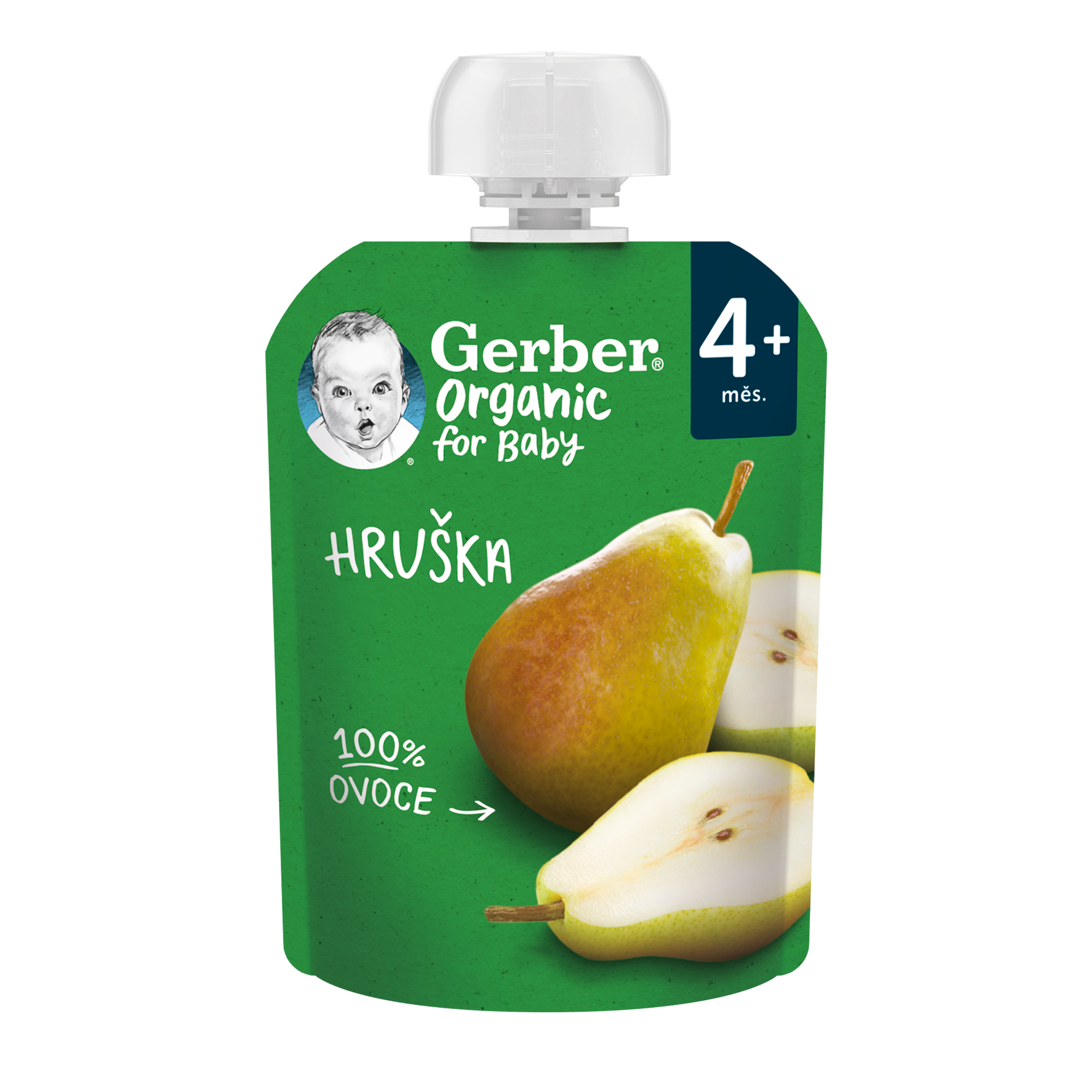GERBER Organic kapsička hruška je vyrobená z nejkvalitnějšího ovoce. Kapsička obsahuje pyré ze zralých kousků hrušky. Váš malý jedlík má tak vynikající chuť ovoce na dosah ručičky. GERBER Organic stejně jako maminka dohlíží na to, aby každá kapsička obsahovala jen to nejlepší ovoce plné opravdové chuti.