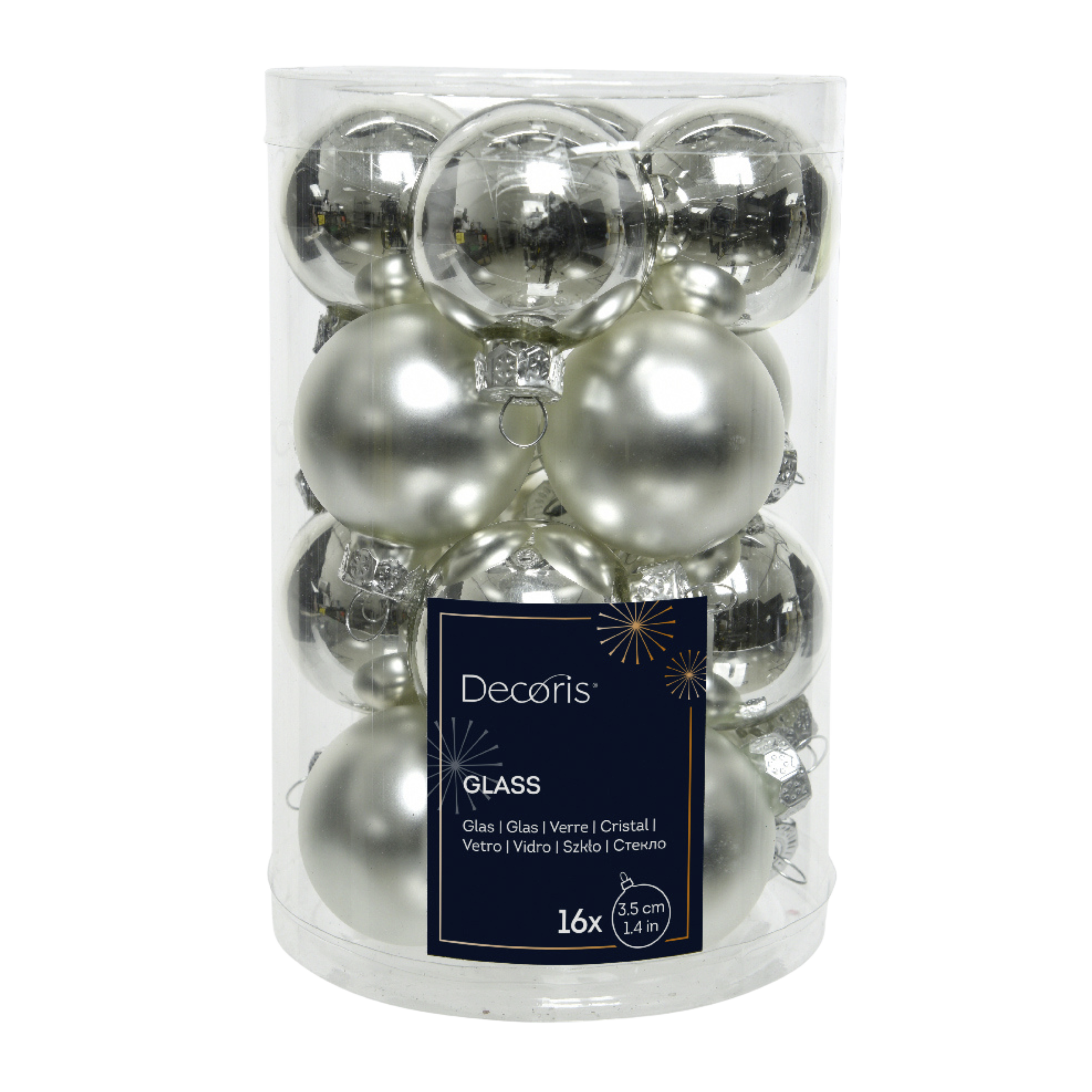 Balení 16 kusů vánočních ozdob v matném a lesklém provedení.
