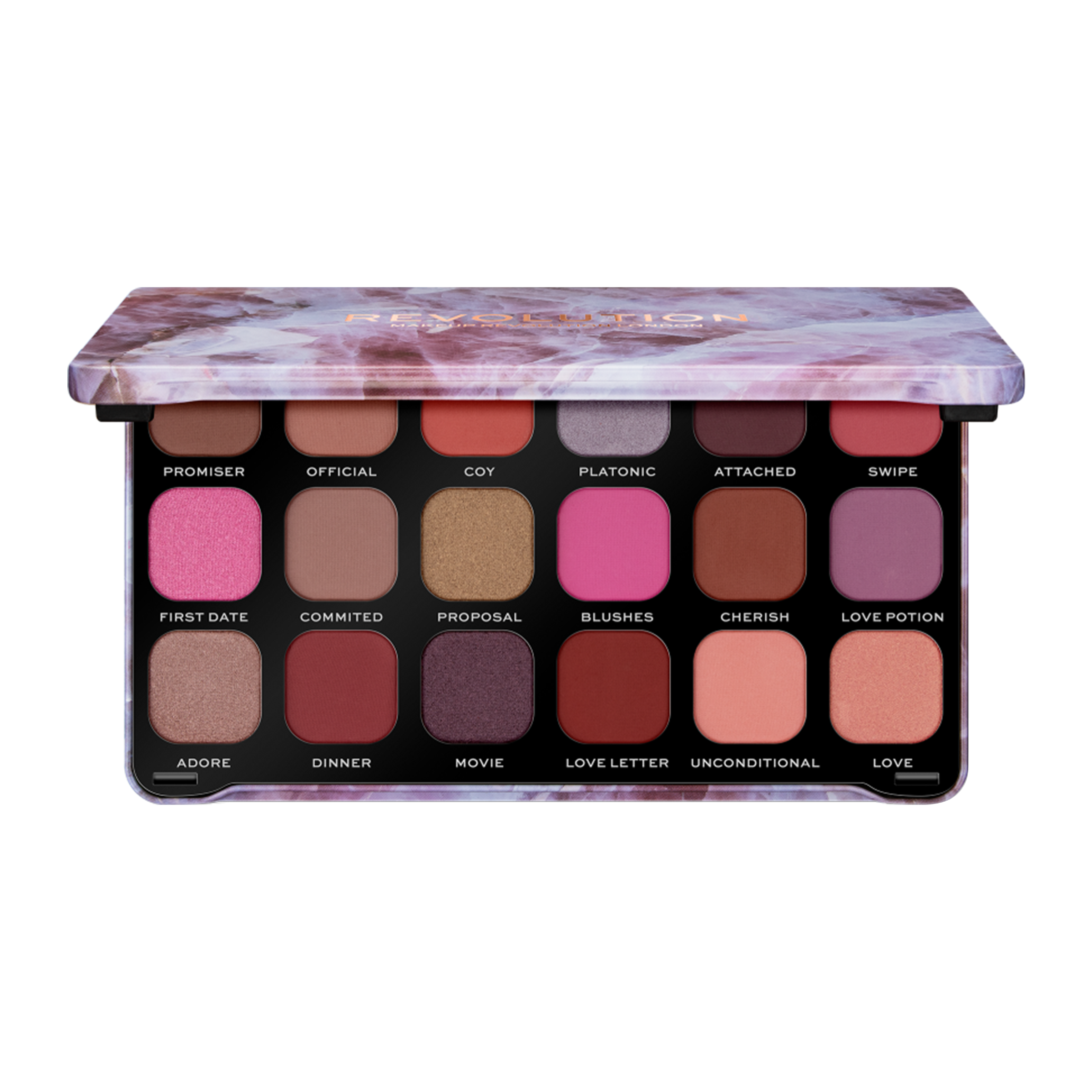 Představujeme paletku, která má osobnost! Tato paletka je určena pro romantiky a nabízí 18 matných a třpytivých očních stínů.