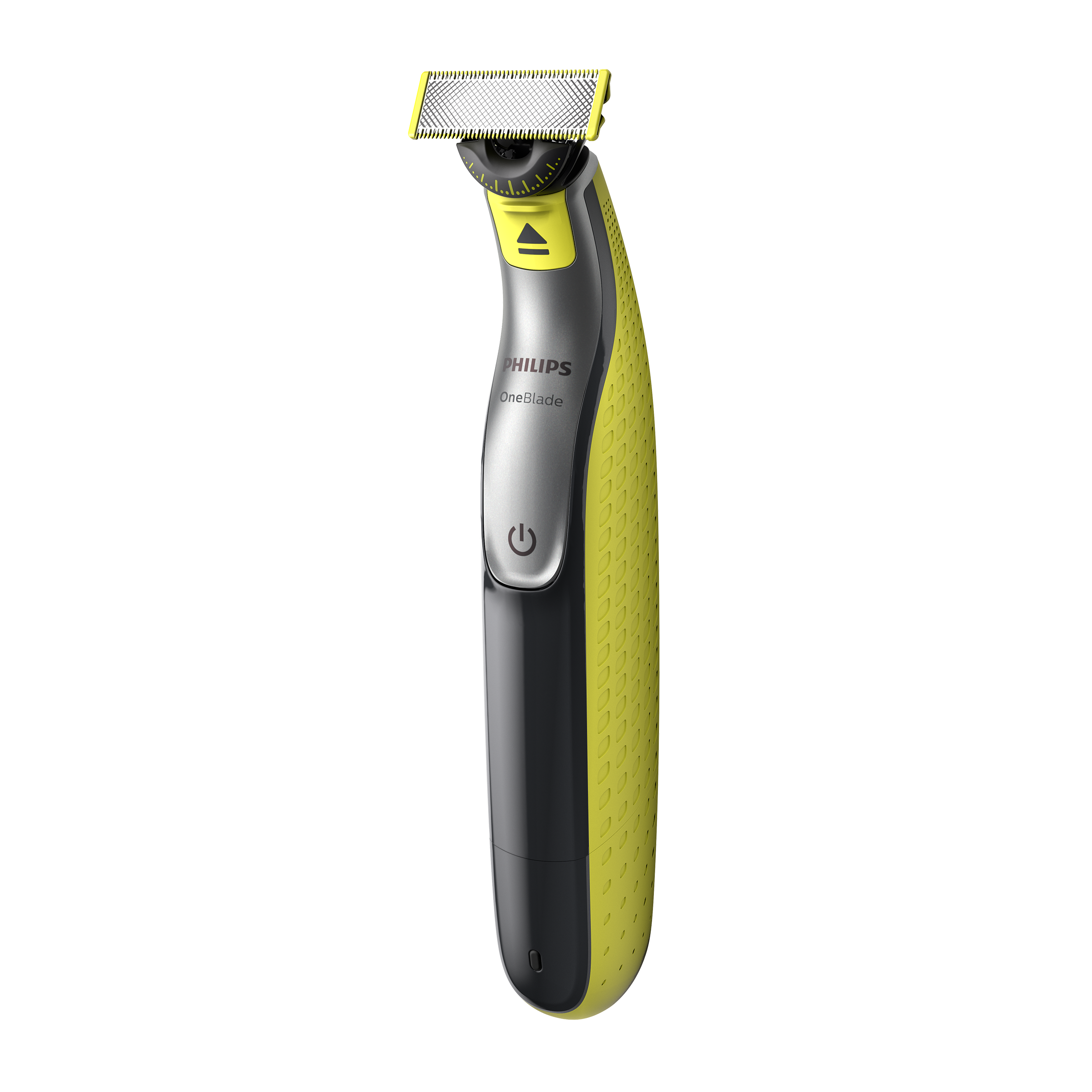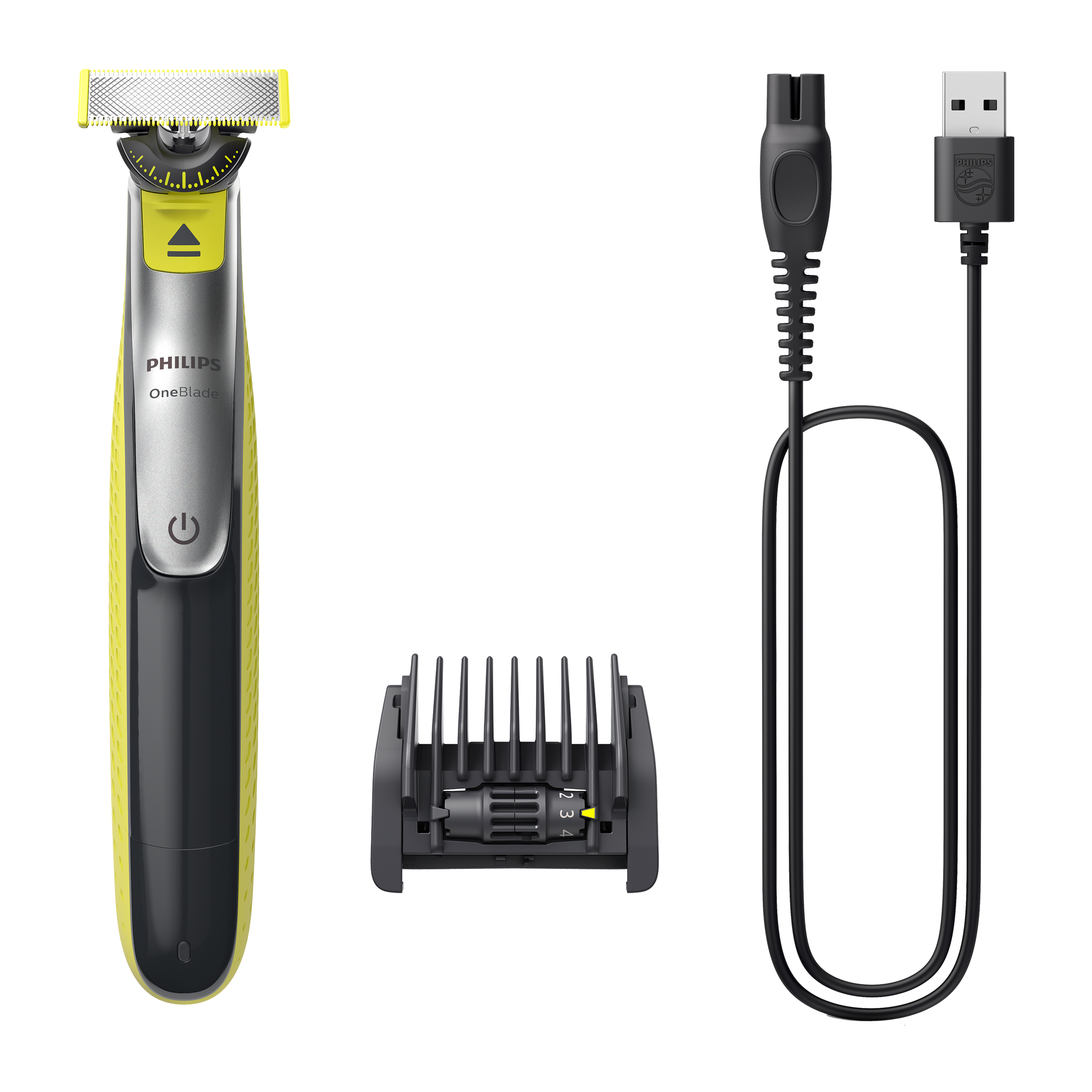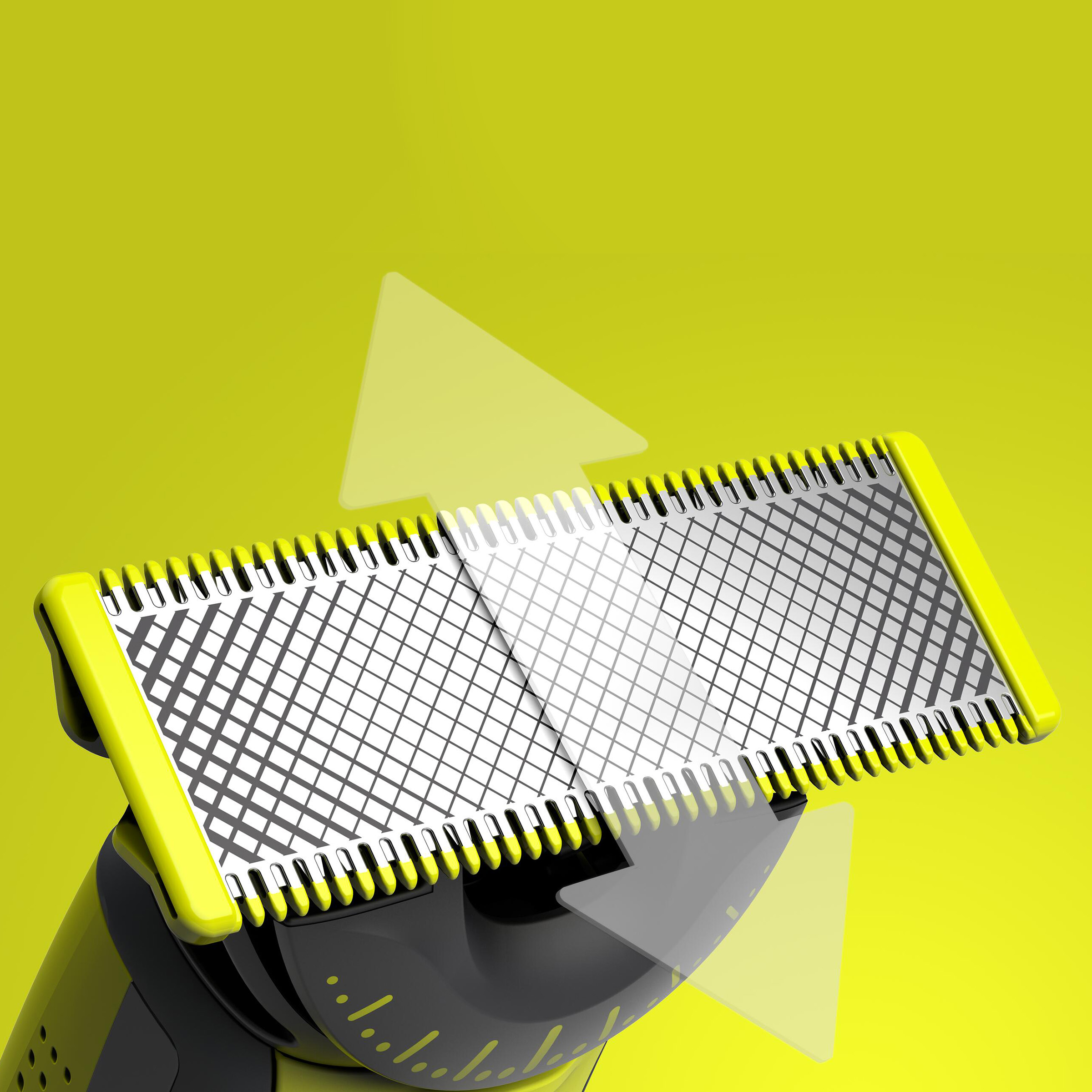 - OneBlade kopíruje obrysy vaší tváře a umožňuje jednoduše a pohodlně zastřihovat a holit všechny části obličeje. Dodejte dvoustranným břitem svému vzhledu styl a pohybem břitu v kterémkoli směru vytvořte čisté linie.