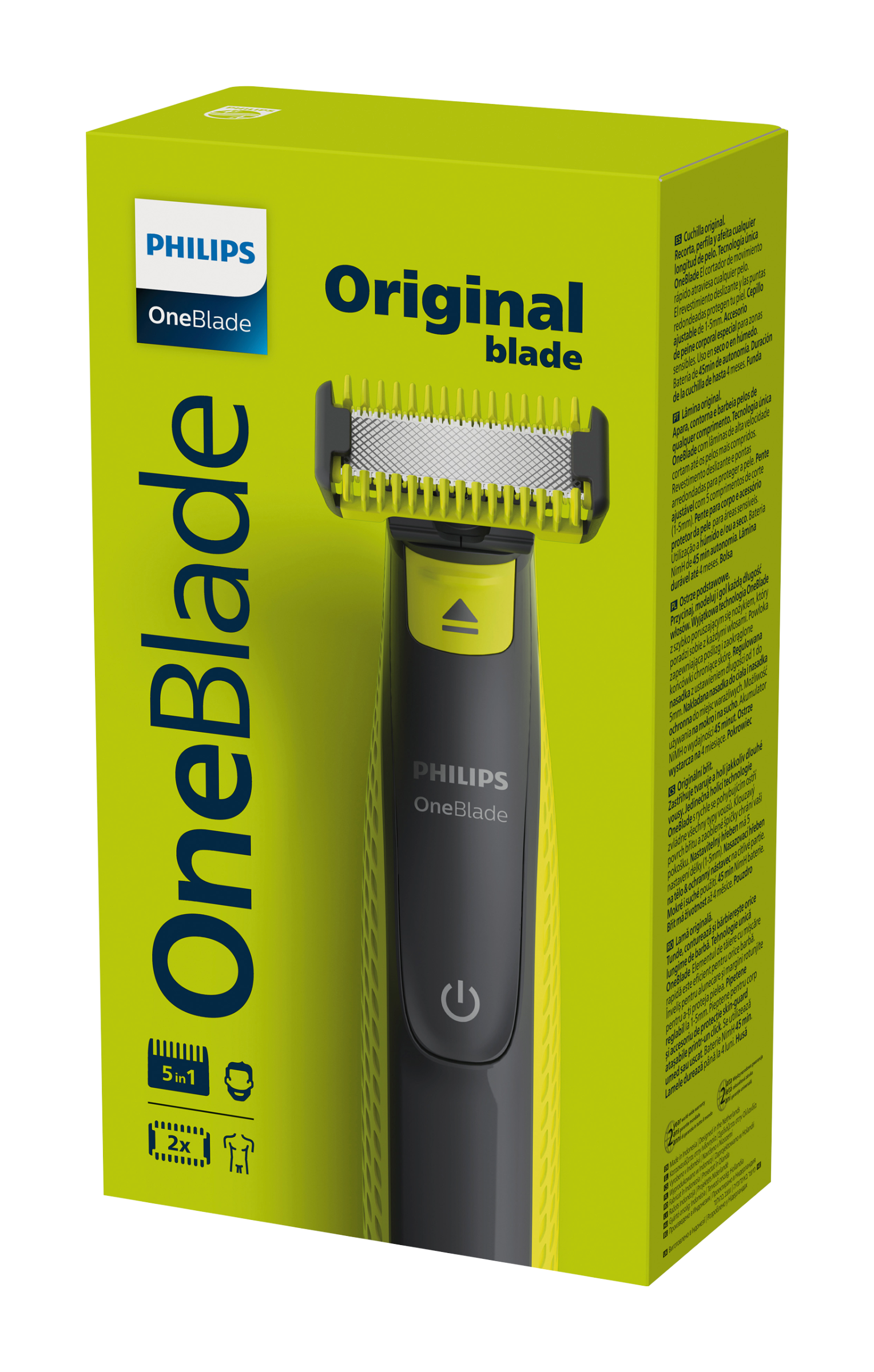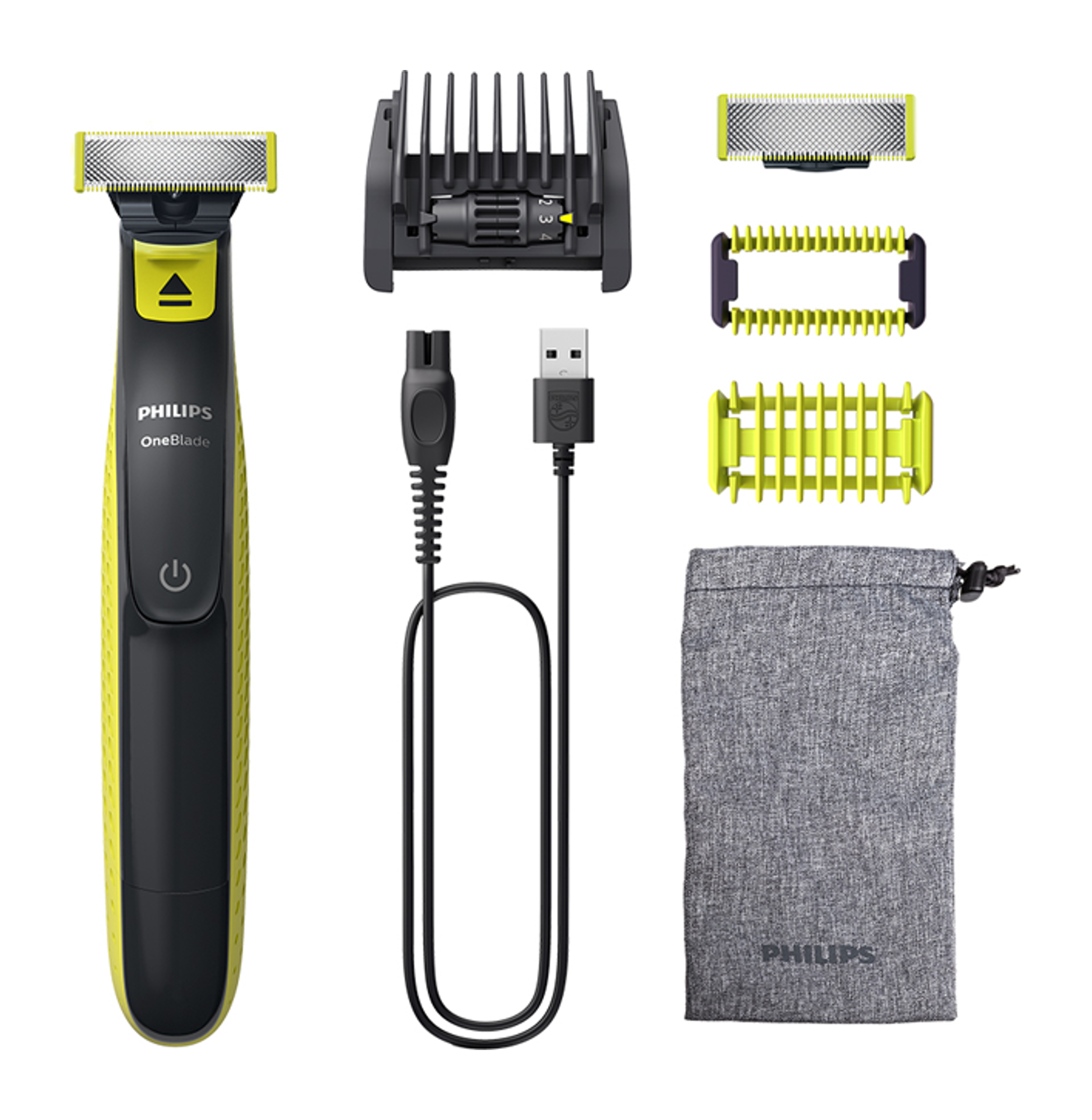 Philips OneBlade na tvář a tělo pro zastřihování, tvarování a oholení libovolně dlouhých vousů a pro zastřihování a holení všech částí těla. Oboustranné ostří s dvojí ochrannou před pořezáním, vhodné i pro citlivou pleť. Navíc ochraný nástavec proti pořezání v citlivých oblastech. Hřebenový nástavec pro zastřihování s 5 nastavení délky vousů (1,2,3,4,5 mm) a nástavec na zastřihování těla (3 mm). Výdrž baterie 45 min / 8 hod nabíjení. 2 břity v balení (1 na tvář + 1 na tělo).