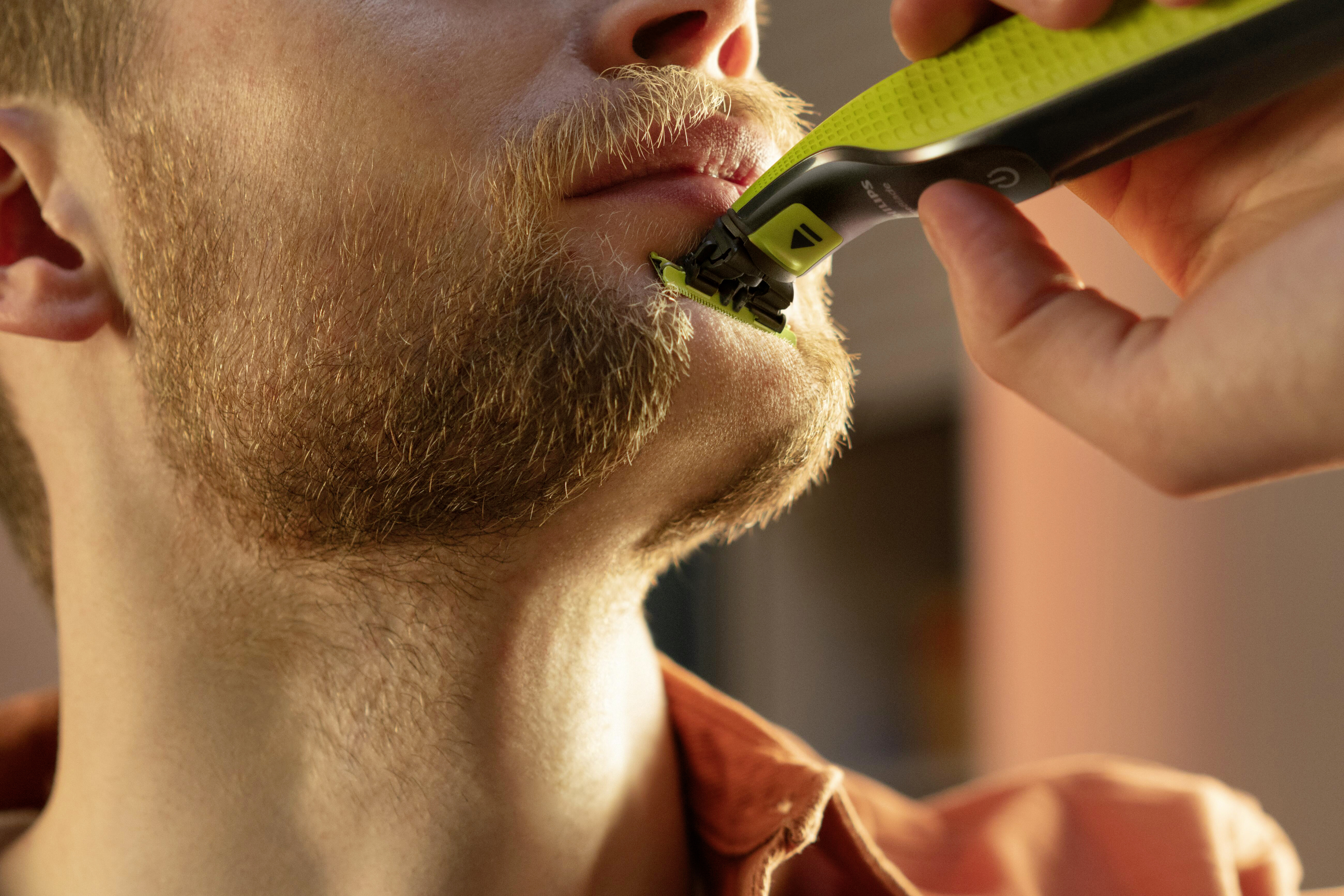 Philips OneBlade zastřihuje - tvaruje - oholí libovolně dlouhé vousy. Oboustranné ostří s dvojí ochrannou před pořezáním, vhodné i pro citlivou pleť. Pro mokré i suché holení.