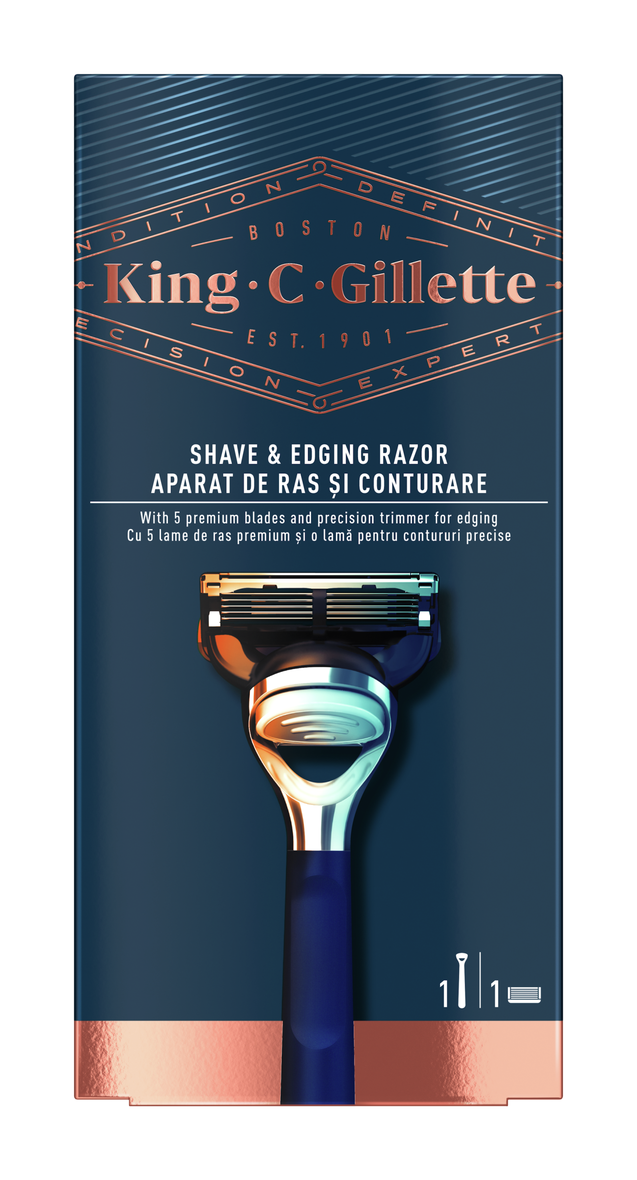 Vrchol více než sta let inovací a expertizy a jediná řada, která nese jméno zakladatele společnosti: King C. Gillette. Holicí strojek navržený tak, aby vám pomohl dosáhnout dokonalé úpravy vousů a vzhledu. Zarovnávací břit pomáhá s holením obtížně přístupných míst a prémiová rukojeť zajišťuje kontrolu při každém tahu.