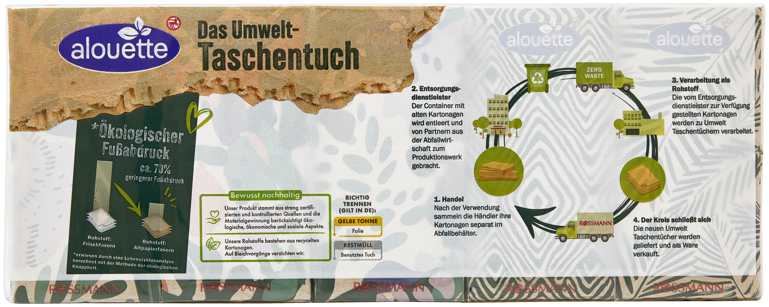 Čtyřvrstvé kapesníky jsou vyrobeny ze 100% hygienicky recyklovaných vláken. Díky své kvalitě jsou super měkké a chrání citlivý nos i při silném nachlazení.