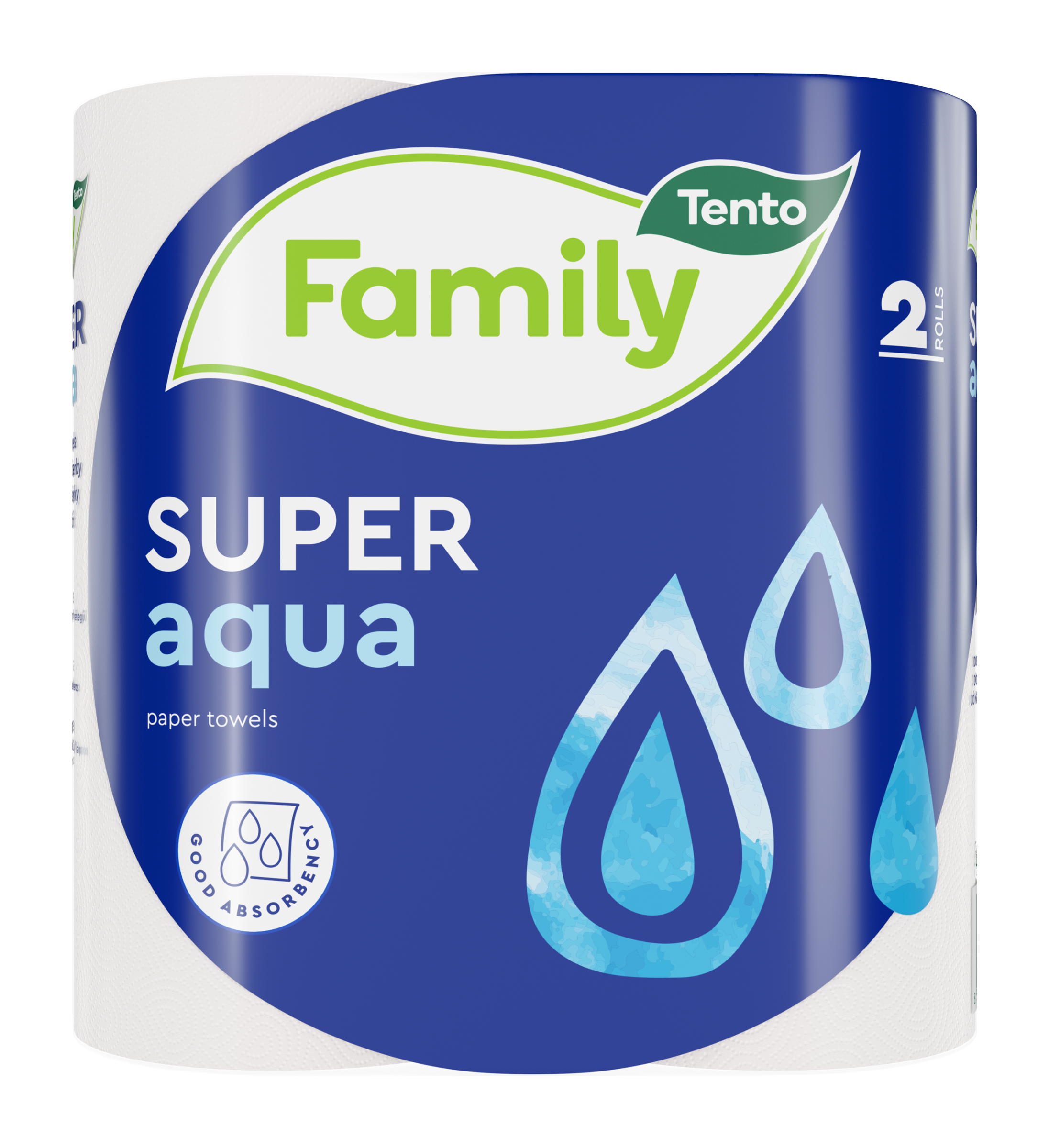 2vrstvé papírové utěrky Tento Family Super Aqua se vyznačují zvýšenou schopností absorbovat vodu, okamžitě odstraní všechny mokré skvrny na jakémkoli povrchu v domácnosti.