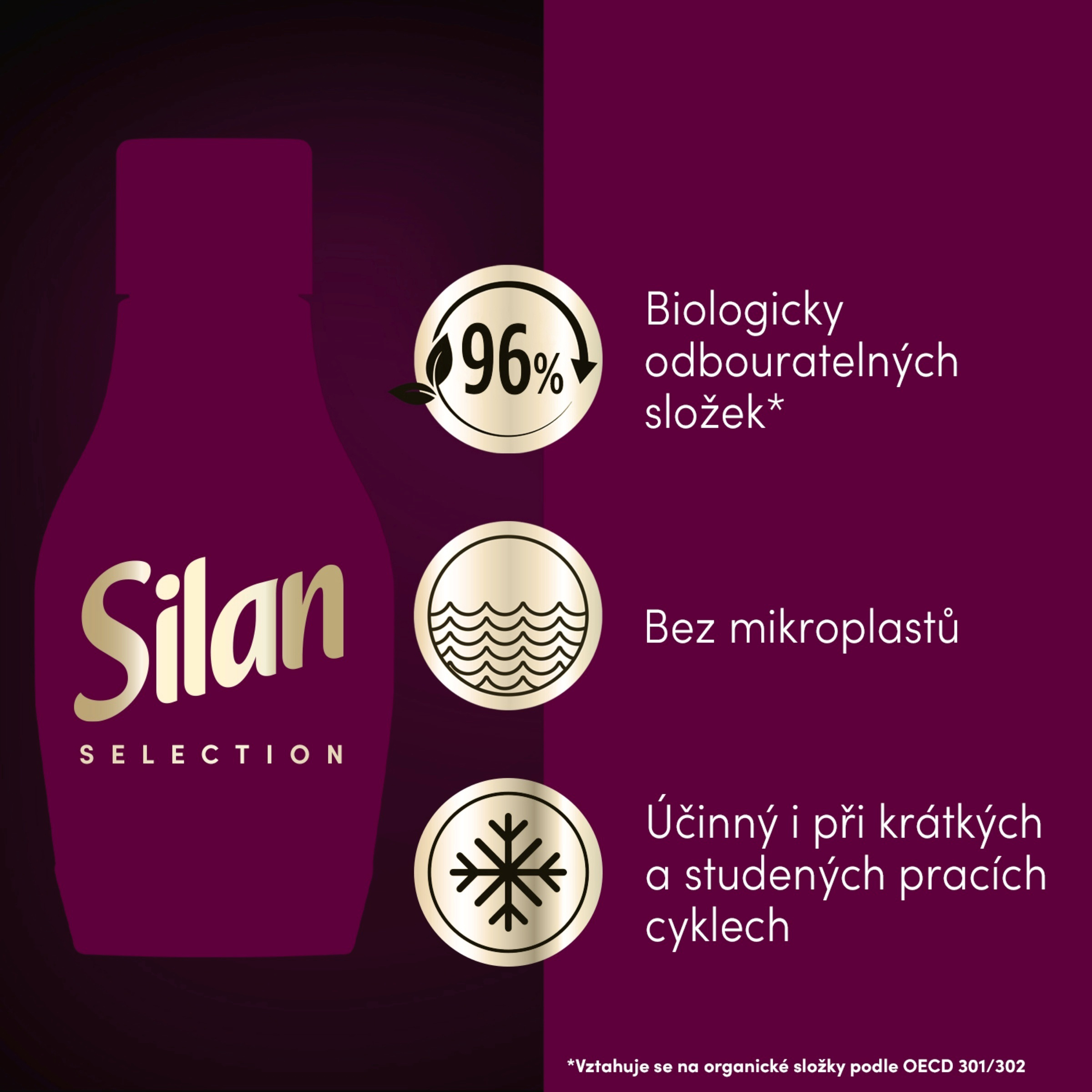 Silan parfém přináší mimořádně dlouhotrvající aroma až na 100 dní. Bez zbytků na tkaninách, vhodný pro všechny druhy textilu a praní - včetně krátkých a studených programů. Silan Floral Essences jsou dermatologicky testované, šetrné k tkaninám a navrženy s ohledem na udržitelnost. Obsahují 92 % biologicky rozložitelných složek, neobsahují silikony ani mikroplasty a jejich lahvička je recyklovatelná. Zažijte pocit svěžesti a čistoty každý den - s romantickou vůní květu třešně, která dodá vašemu prádlu nezapomenutelnou aroma.