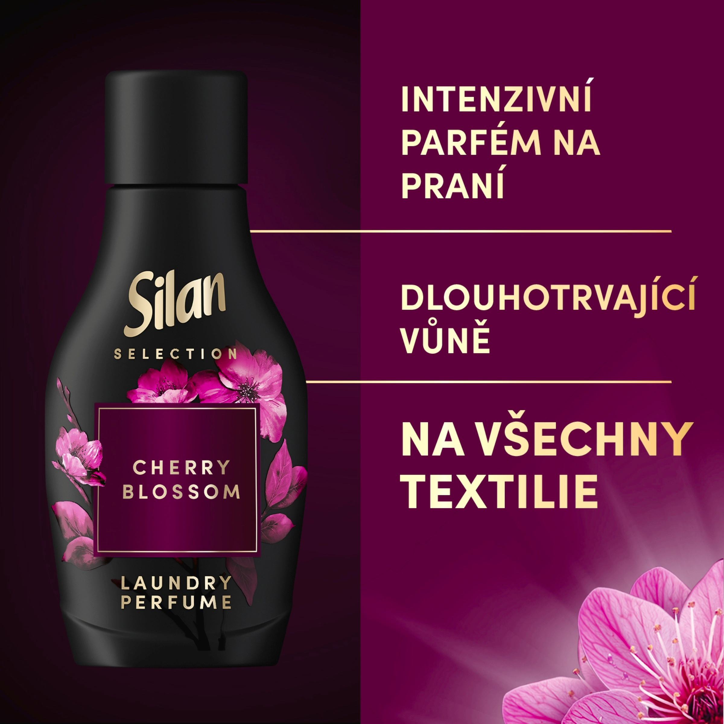 Silan parfém na praní Cherry Blossom - intenzivní a dlouhotrvající vůně pro vaše prádlo. Dopřejte svému prádlu neodolatelnou svěžest s parfémem na praní Silan Floral Essences Cherry Blossom. Jemná a přitom výrazná vůně květu třešně je inspirována přírodou a postupně se rozvíjí během nošení, díky čemuž zůstane vaše oblečení svěží a voňavé celé týdny - i po delším skladování. Cherry Blossom je poctou japonské sakure - spojuje jemné okvětní lístky s výraznými ovocnými tóny a vytváří nezapomenutelnou svěžest. Tato harmonická kompozice nese romantiku rozkvetlých sadů a smyslný dotek přírody. Každé praní se tak mění na jemný a povzbuzující zážitek pro smysly.