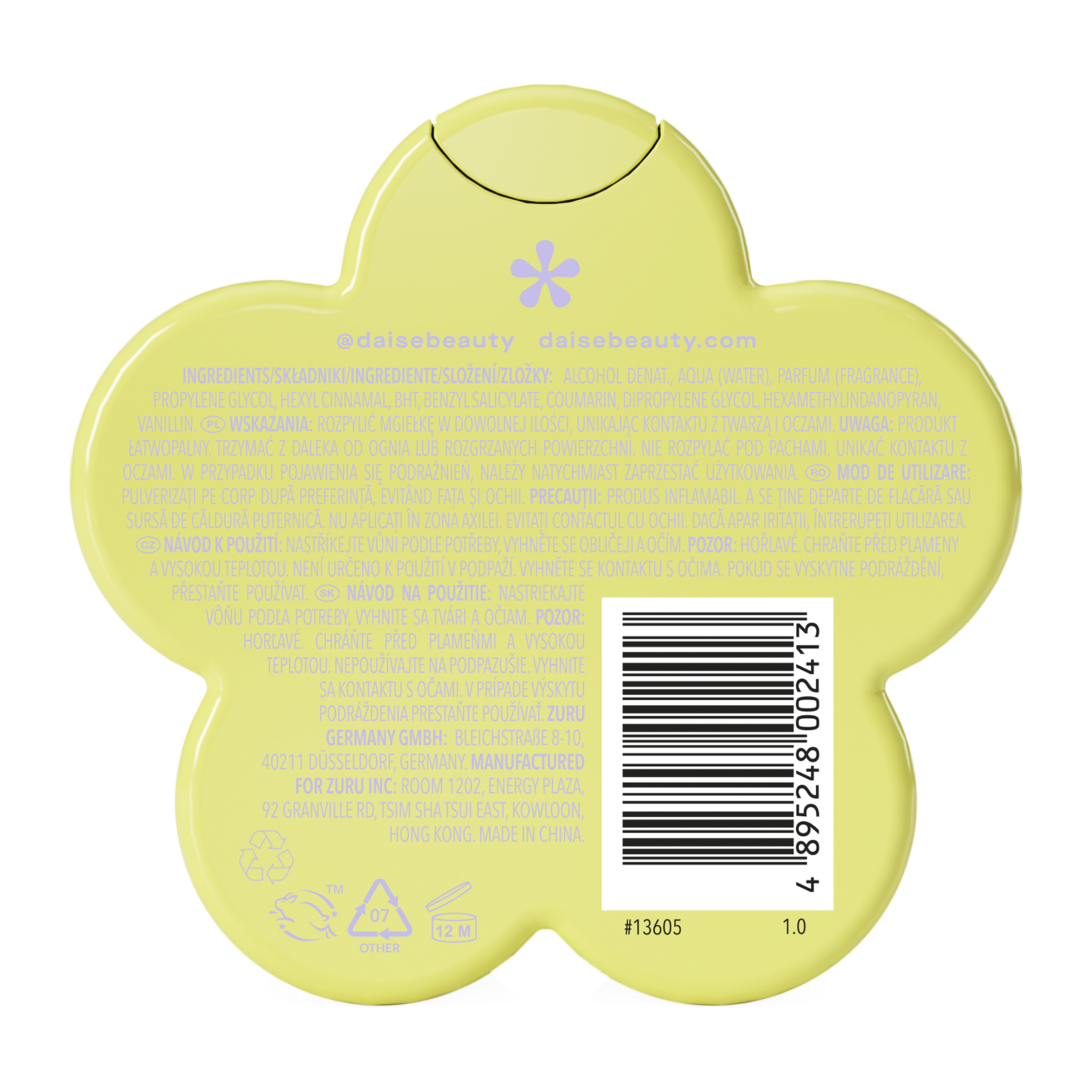 Seznamte se s vaším novým oblíbeným sprejem na tělo a vlasy! DAISE Sunny Daise Fragrance Body Mist je krémově vonící sprej s vanilkou a kokosem, který je ideální pro tělo i vlasy. Daise kombinuje jemnou vanilku, kokos, bílou lilii a heřmánek s čerstvým aloe a zemitým pačuli – a vydrží až 24 hodin.