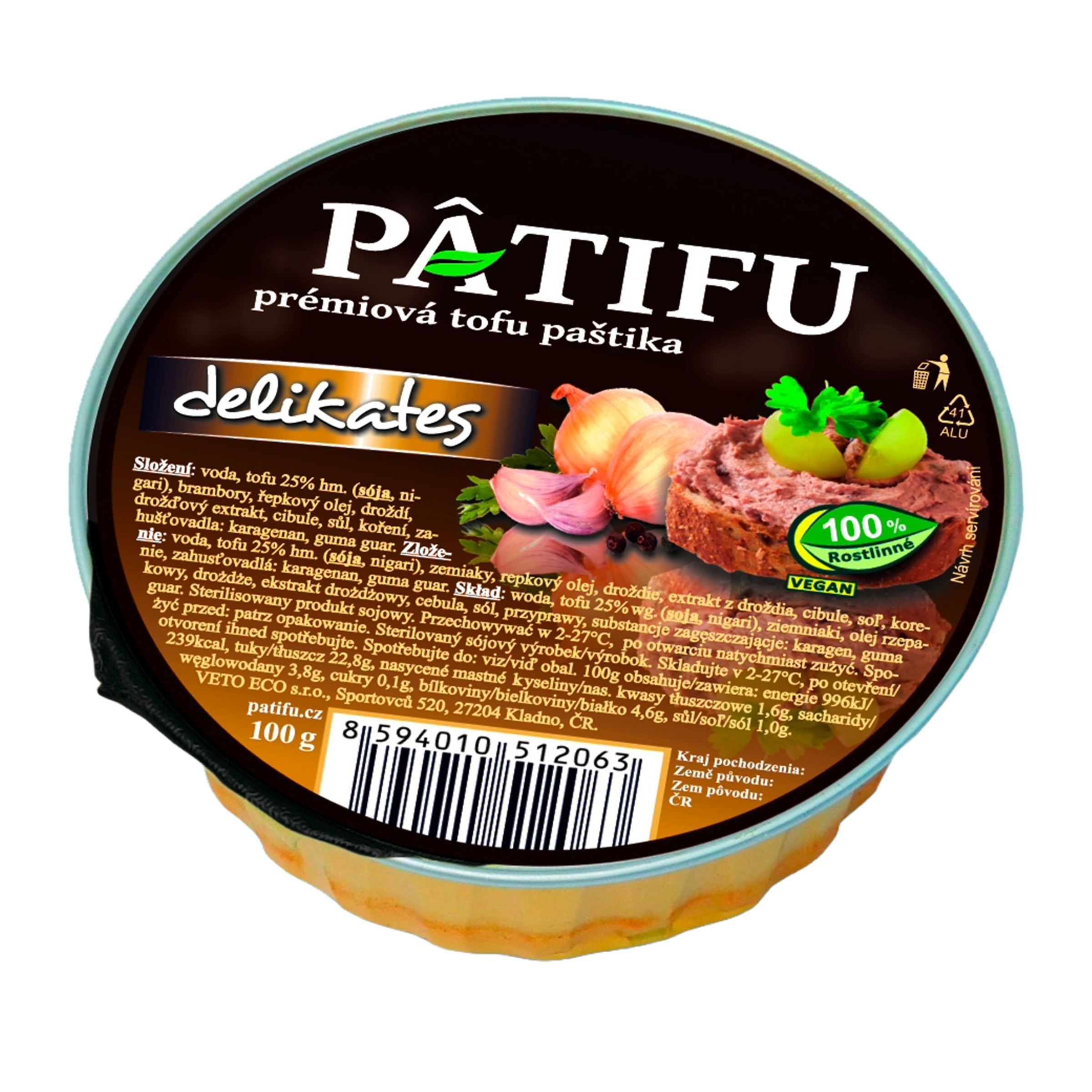 Delikátní rostlinná paštika s chutí cibulky a droždí. Prémiová paštika s jemnou chutí droždí a cibulky, vyráběná českou firmou jen a pouze z rostlinných surovin jako je například tofu, brambor a řepkový olej. Neobsahuje GMO, glutamáty, umělá aromata, konzervanty ani chemické přísady. Skvěle se hodí pro přípravu pohoštění či zdravého občerstvení, a to i pro milovníky masových paštik. Díky praktickému balení v Alu misce a dlouhé trvanlivosti bez nutnosti chlazení je ale také oblíbenou svačinkou na cesty, do práce nebo do školy. Výrobek je přirozeně bezlepkový a je vhodný pro vegany, vegetariány, diabetiky i pro ty, kdo drží redukční diety. Ocení ho tedy každý, komu záleží na zdravější životosprávě.