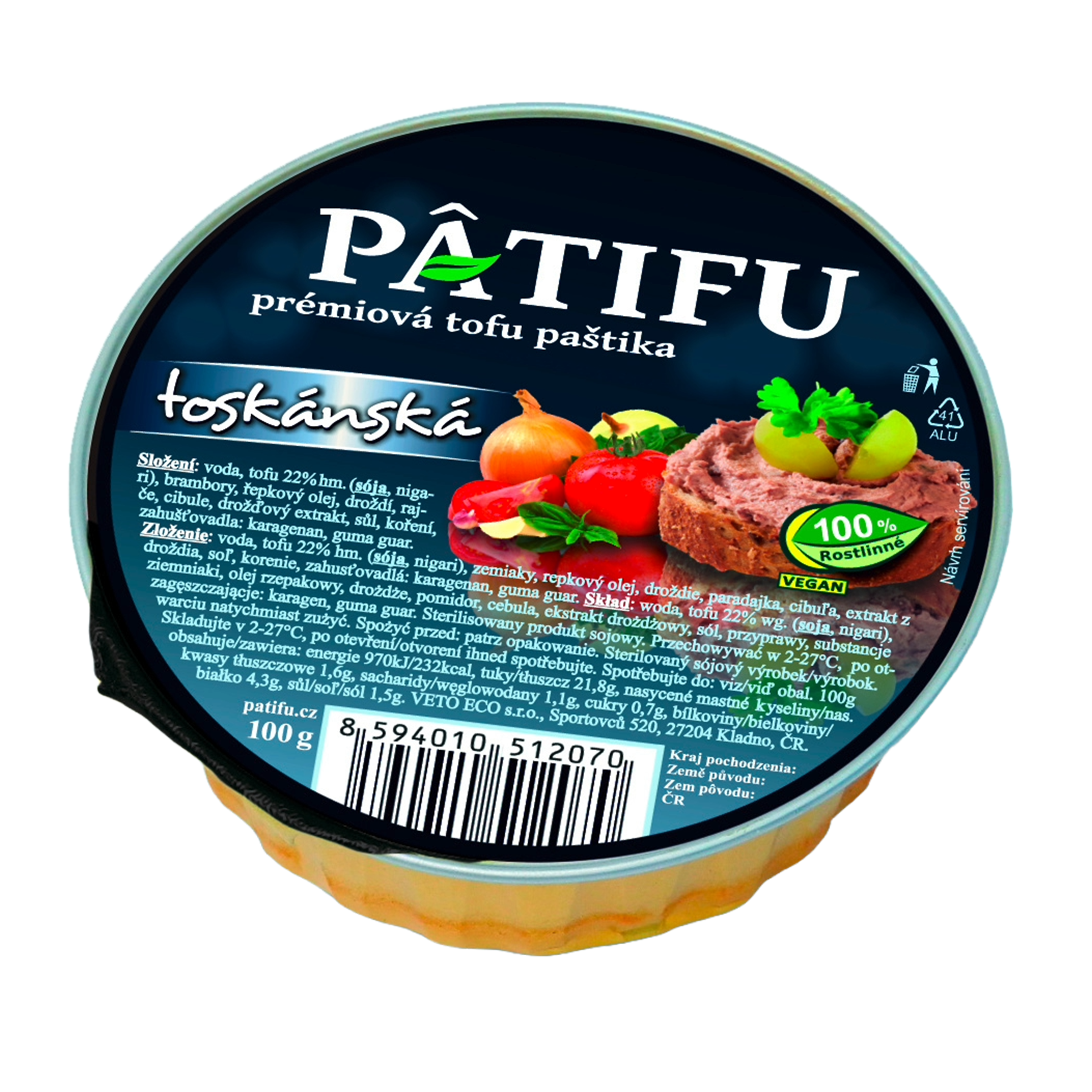Mírně pikantní rostlinná paštika s chutí zeleniny, droždí a voňavého koření. Prémiová paštika v kombinaci se zeleninou, droždím a jemně pikantním kořením, vyráběná českou firmou jen a pouze z rostlinných surovin jako je například tofu, brambor a řepkový olej. Neobsahuje GMO, glutamáty, umělá aromata, konzervanty ani chemické přísady. Skvěle se hodí pro přípravu pohoštění i zdravého občerstvení. Díky praktickému balení v Alu misce a dlouhé trvanlivosti bez nutnosti chlazení je ale také oblíbenou svačinkou na cesty, do práce či do školy. Výrobek je přirozeně bezlepkový a je vhodný pro vegany, vegetariány, diabetiky i pro ty, kdo drží redukční diety. Ocení ho tedy každý, komu záleží na zdravější životosprávě.