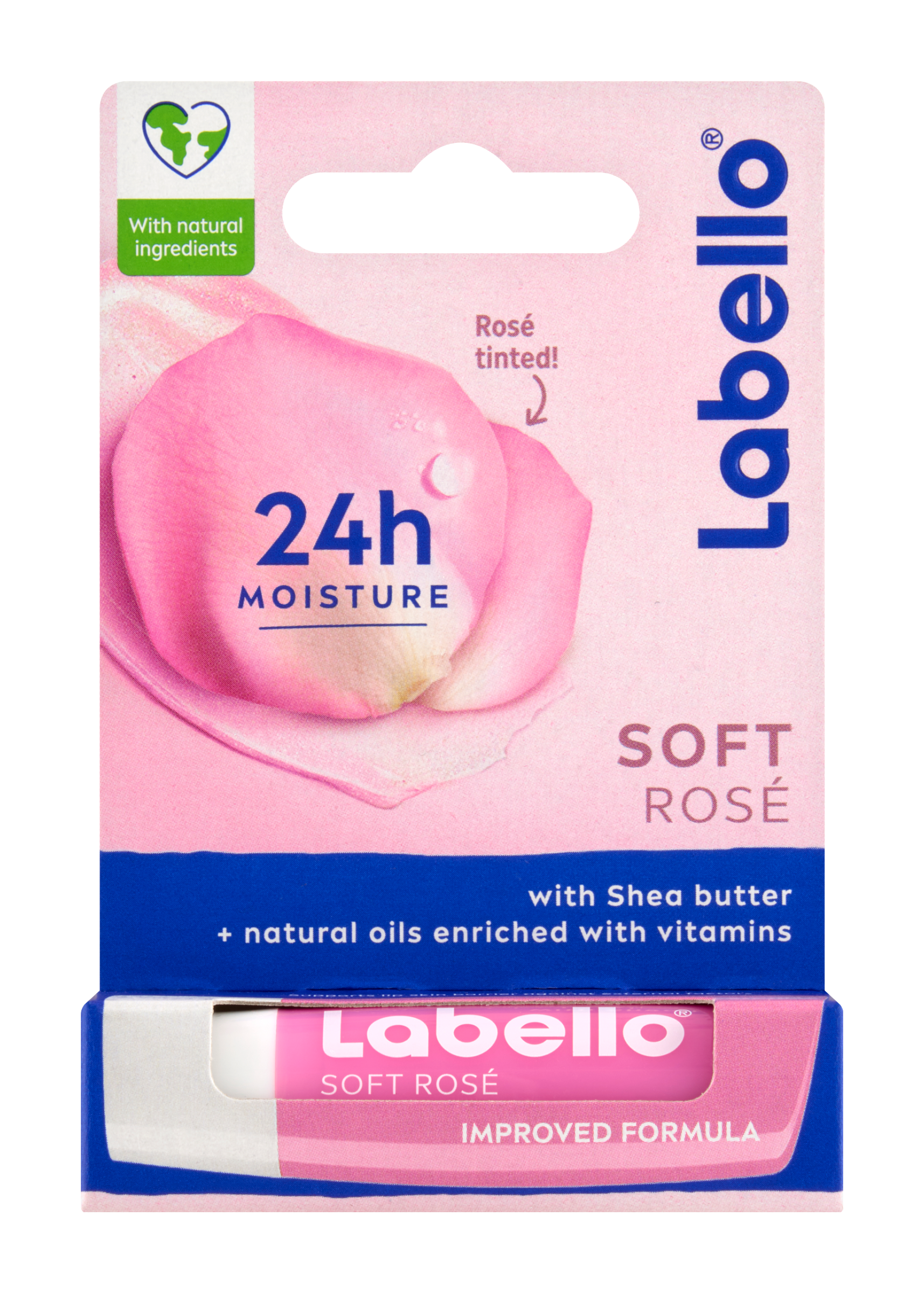Osvěžte svůj vzhled. Labello® Balzám na rty Soft Rosé s bambuckým máslem chrání rty před chladem, větrem a suchým vzduchem. Hebké rty po 24h - klinicky testováno.