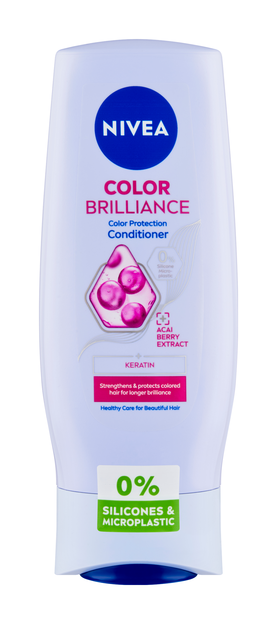Nivea® Kondicionér Color Brilliance s výtažky z acai berry a keratinem - pro zářivou barvu vlasů. Usnadňuje rozčesávání.