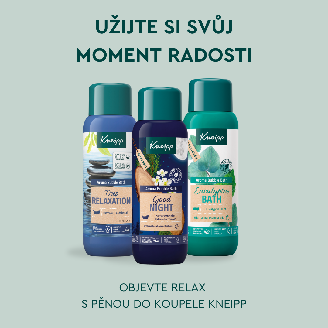 Kneipp® pěna do koupele Eukalyptus s bohatou pěnou příjemně zahřeje tělo během chladných měsíců, ale své uplatnění ale najde i v průběhu léta, kdy tělo naopak příjemně osvěží. Stačí si jen pohrát s teplotou vody. Veganské složení kombinující esenciální oleje z eukalyptu a máty pokožku jemně vyčistí a zároveň zjemní. Pokud toužíte po hebké, příjemně provoněné pokožce, našli jste přesně to, co hledáte.