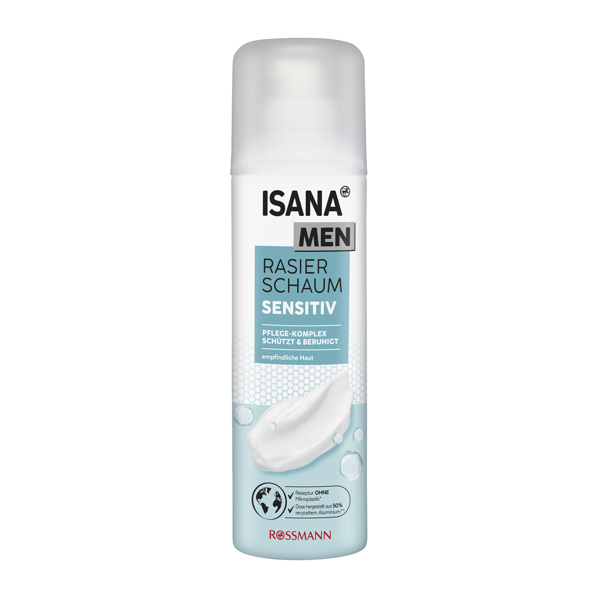 ISANA Men pěna na holení Sensitive s pečujícím složením, které zklidňuje citlivou mužskou pokožku a chrání ji před podráždením při holení.