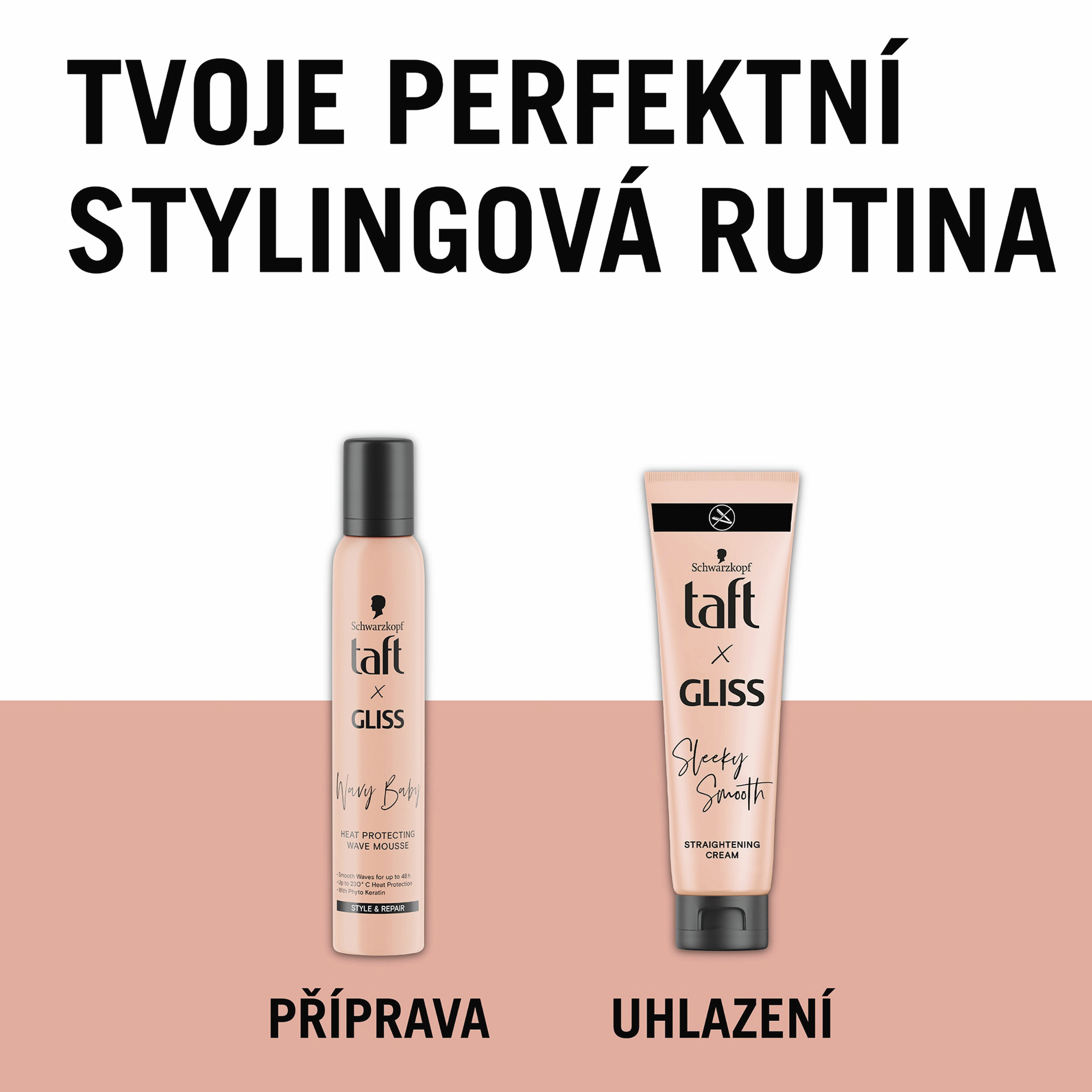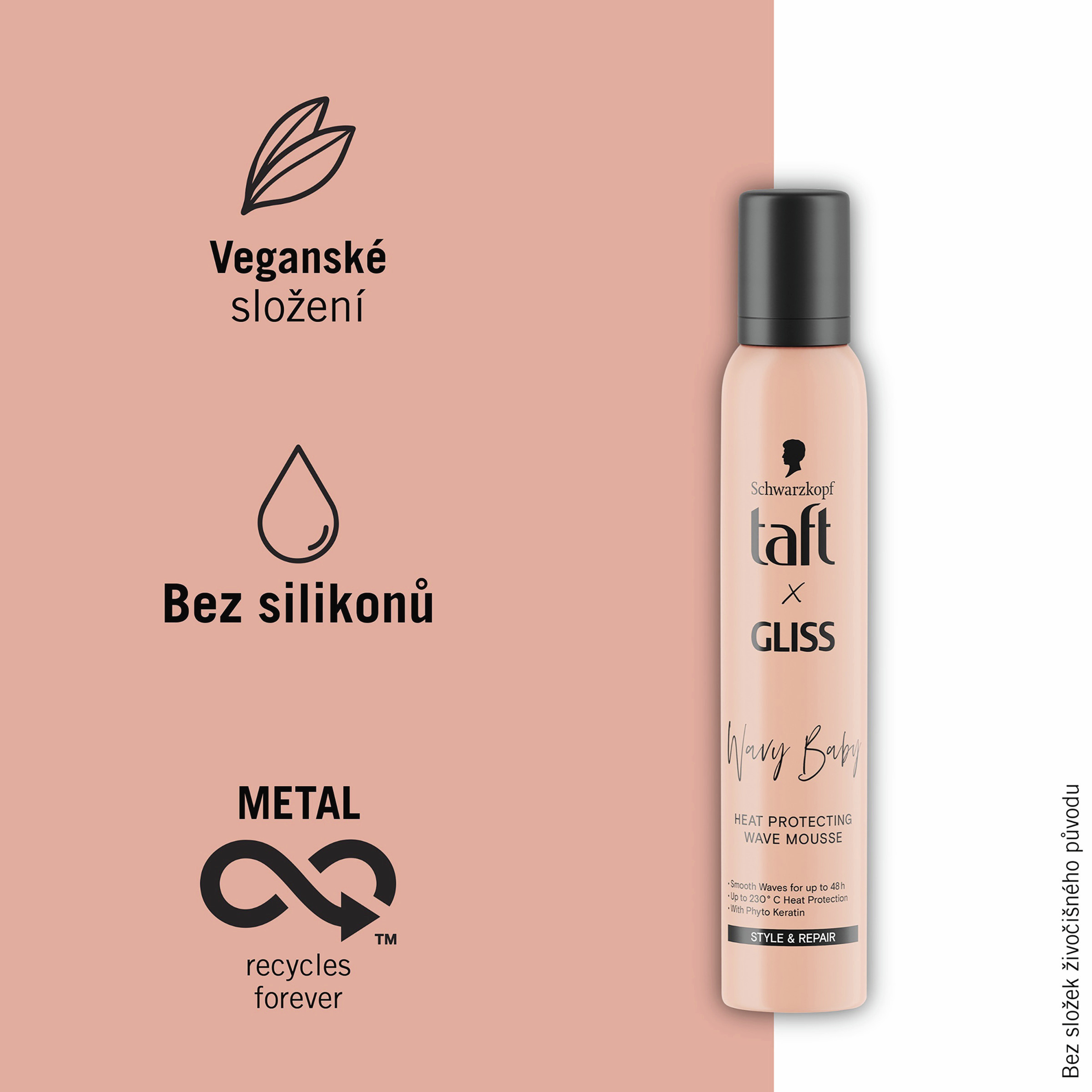Taft x Gliss Tepelná Ochrana Wave Mousse 150 ml - Style & Repair Taft x Gliss Wave Mousse kombinuje styling a obnovu vlasů s Gliss Péčí & Technologií pro obnovu vlasů s Phyto Keratinem & Panthenolem. Pro všechny typy vlasů. Tato stylingová pěna poskytuje tepelnou ochranu až do 230°C a udržuje tvar vln po dobu 48h. Tato vlasová stylingová pěna vlasy posiluje a obnovuje, aniž by je zanechávala tvrdé nebo lepivé, a zároveň je nezatěžuje. Složení je veganské* a bez silikonů.