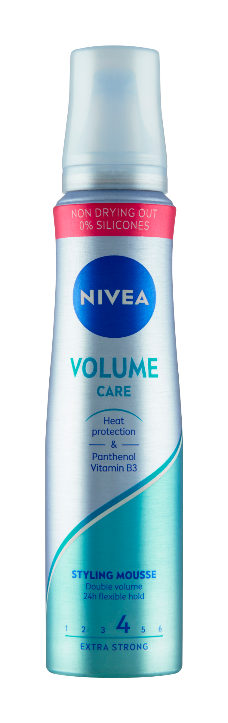 Nivea® Pěnové tužidlo Volume Care s panthenolem a vitamínem B3 chrání před teplem. Pěna aktivně o vlasy pečuje, neslepuje je a dodá jim 24h fixaci. Pro viditelný objem vlasů a příjemný pocit.
