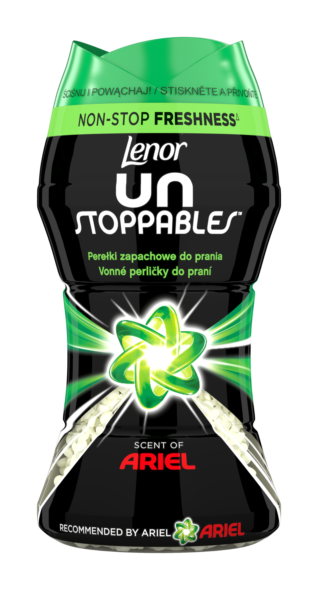 Vonné perličky do praní Lenor Unstoppables jsou k dostání v různých variantách, z nichž každá dává prádlu intenzivní vůni a svěžest v každém praní. Perličky Lenor Unstoppables dávají prádlu intenzivní svěží vůni až do dalšího vyprání. Tato vůně vydrží na oblečení až 12 týdnů (při uskladnění prádla), takže si ho můžete kdykoliv obléknout a bude provoněné vaší oblíbenou vůní. Naši odborníci na vůně doporučují Unstoppables s vůní Ariel, která zanechává moderní nádech tradičního parfému bílých květin. Tato jedinečná kytice frézií, fialek a růží obklopuje srdce vůně jiskřící tradičními čistými a silnými zelenými aromatickými a aldehydovými svěžími tóny. To vše spočívá na základu teplých, uklidňujících dřevitých a jantarových tónů, které poskytují této příjemné vůni rovnováhu.